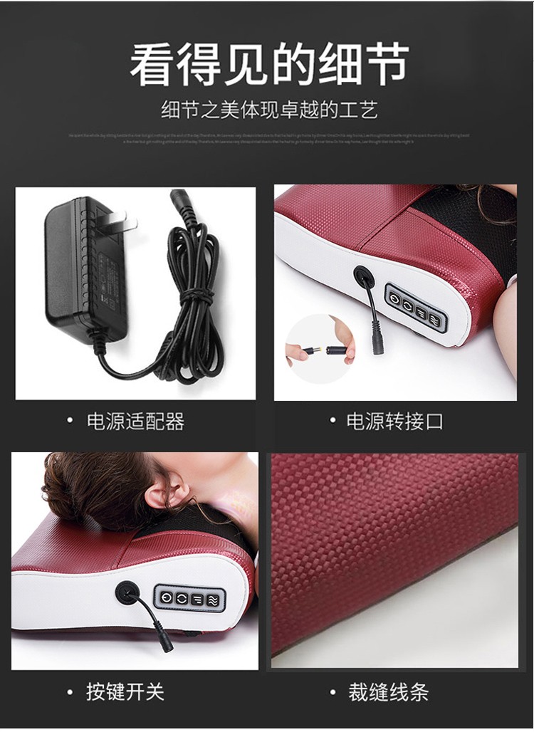 商品名称:佳胜达颈椎按摩器按摩枕JSD-617A头部按摩枕腰部颈部全身多功能按摩靠垫按摩枕 红色