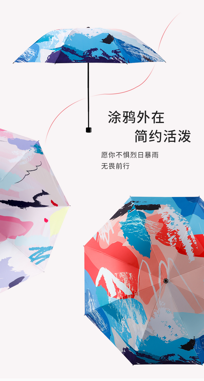 商品名称:尼诺里拉 涂鸦系列黑胶晴雨伞 NR0742(单位:把) 暮芸粉