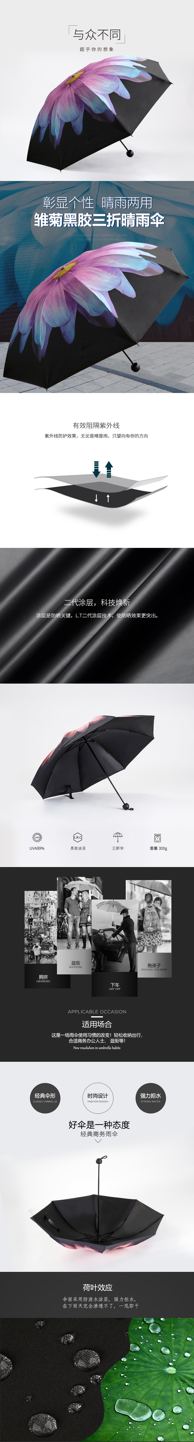 商品名称:尼诺里拉雏菊黑胶三折晴雨伞NYB854 紫色