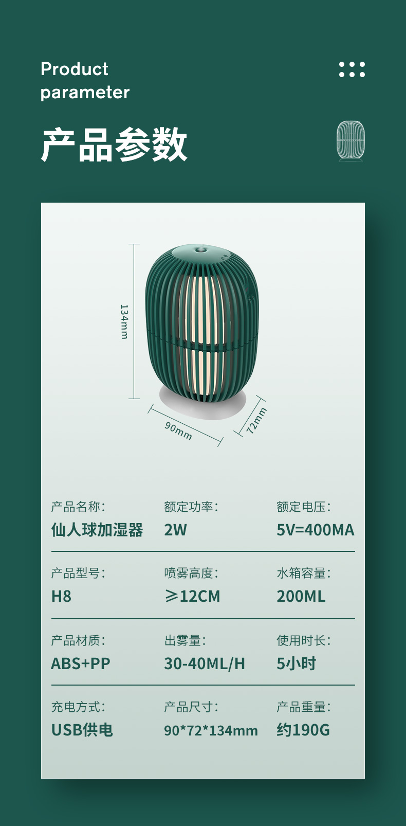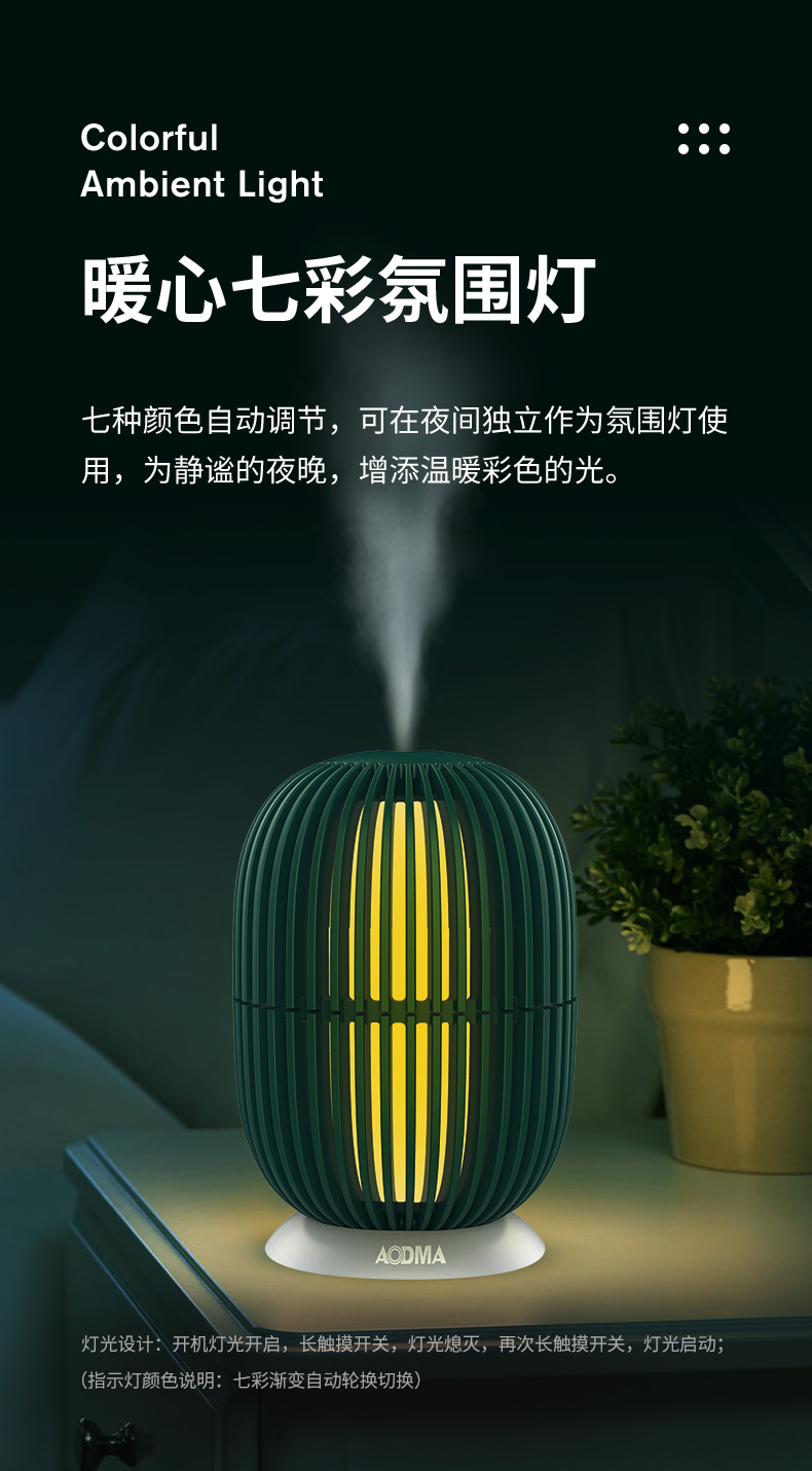 商品名称:澳得迈(AODMA) 桌面空气加湿器 H8 200ml水箱容量 粉色(单位:个)