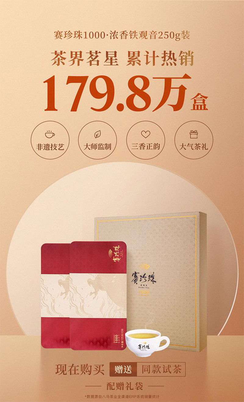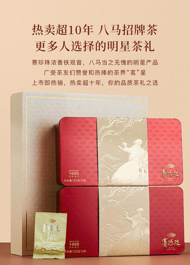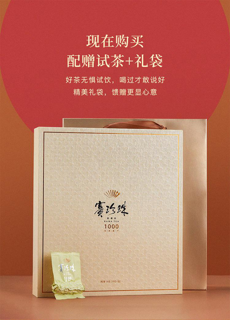 商品名称:八马茶业 茶叶 AA2086 赛珍珠1000 安溪铁观音 浓香型 250G 礼盒装 红色
