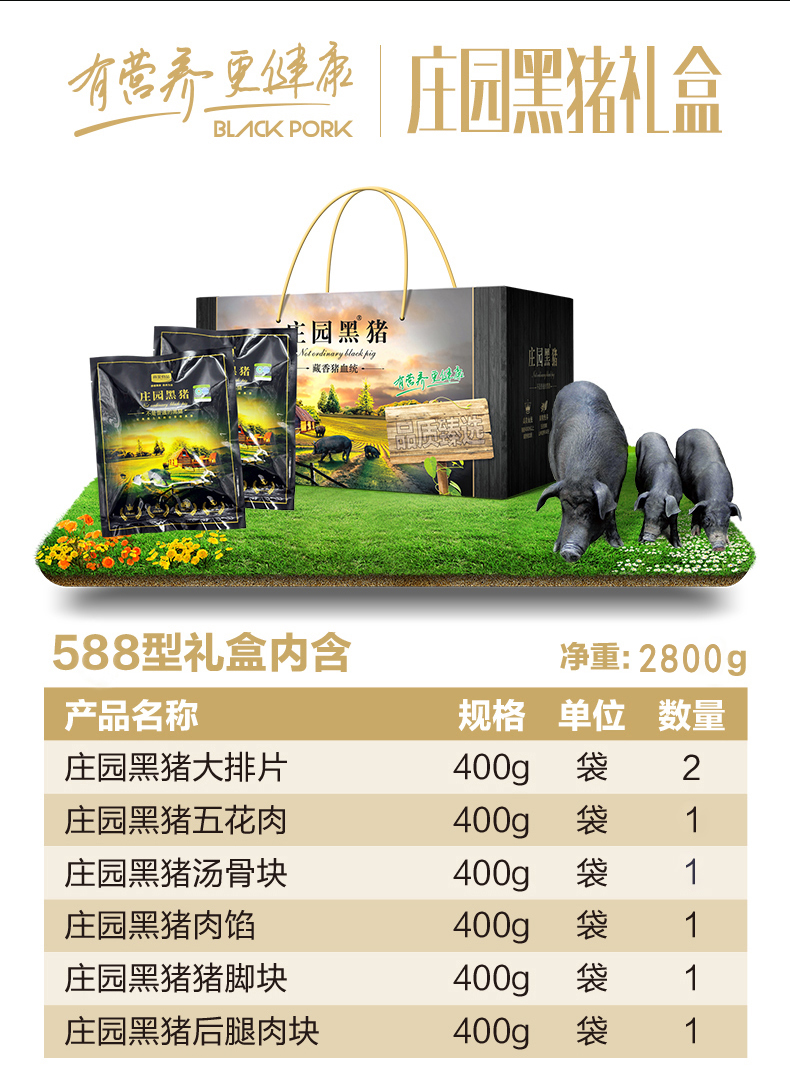 商品名称:高金食品庄园黑猪肉礼盒588型 深空流光