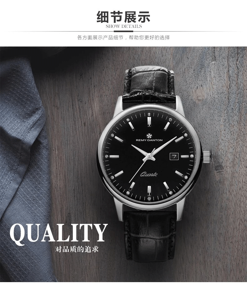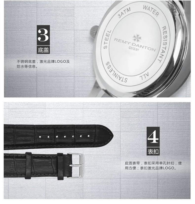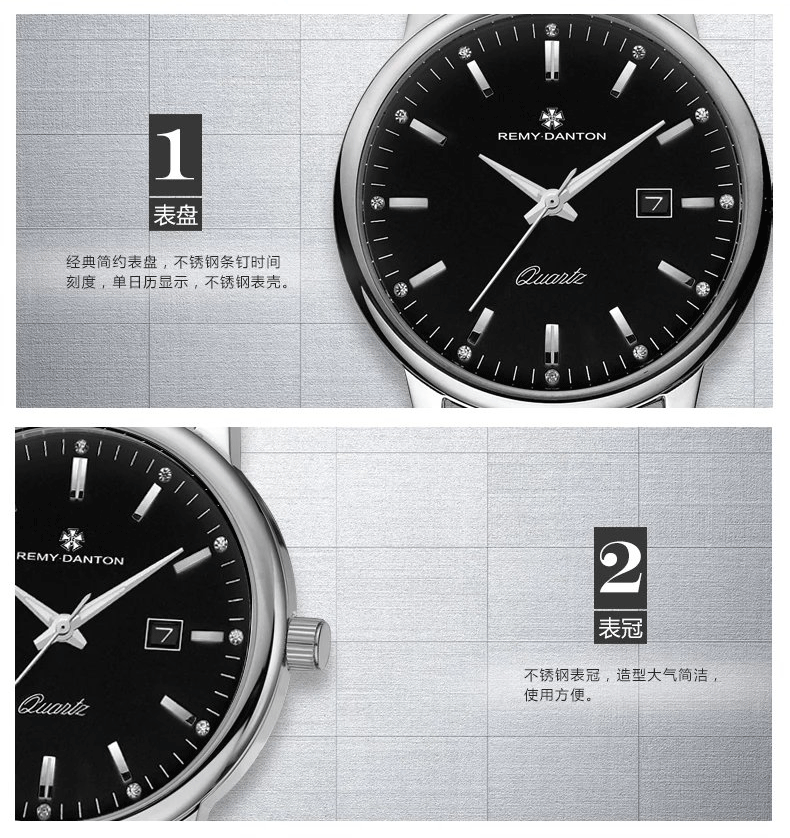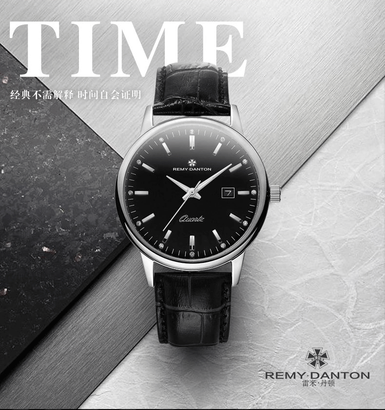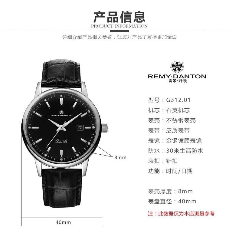 商品名称:雷米丹顿(REMY DANTON)正品夜光表经典石英表女表真皮防水时尚潮流 312.02.03银壳白面黑色皮带