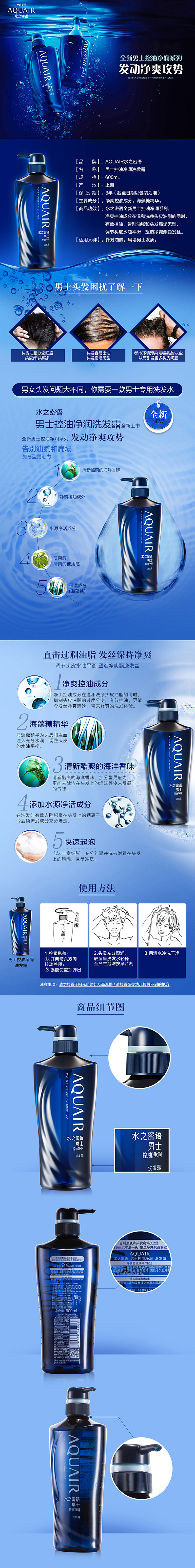 商品名称:水之密语 AQUAIR 男士洗发露 控油净润 600ML 蓝色