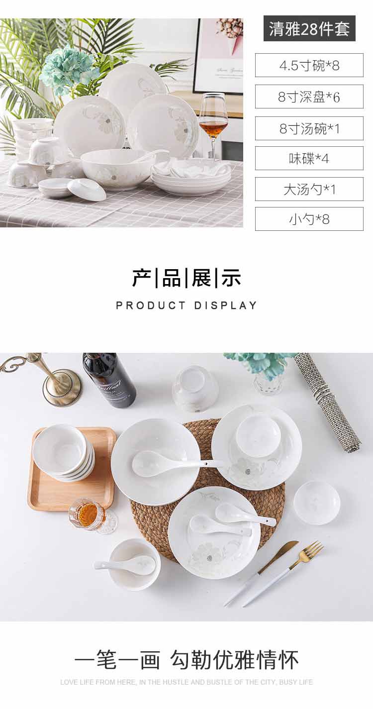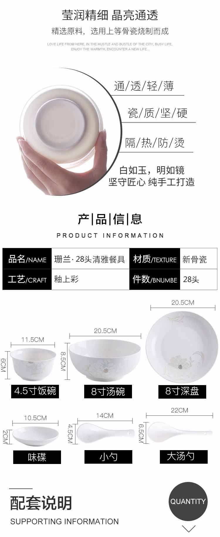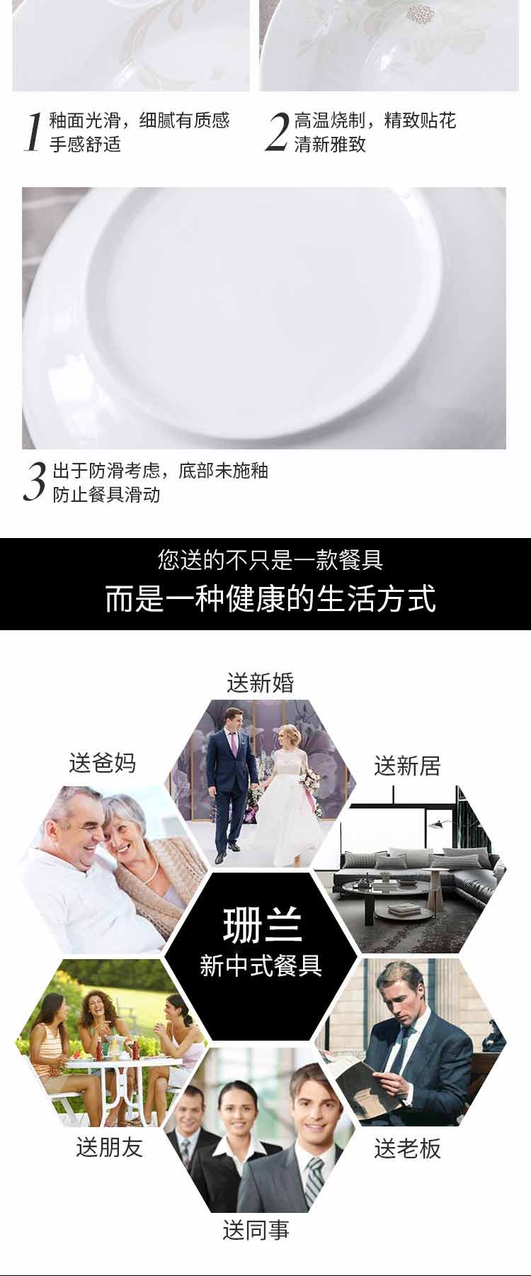 商品名称:珊兰中式陶瓷28件套清雅餐具套装釉上彩碗碟SL-2802C