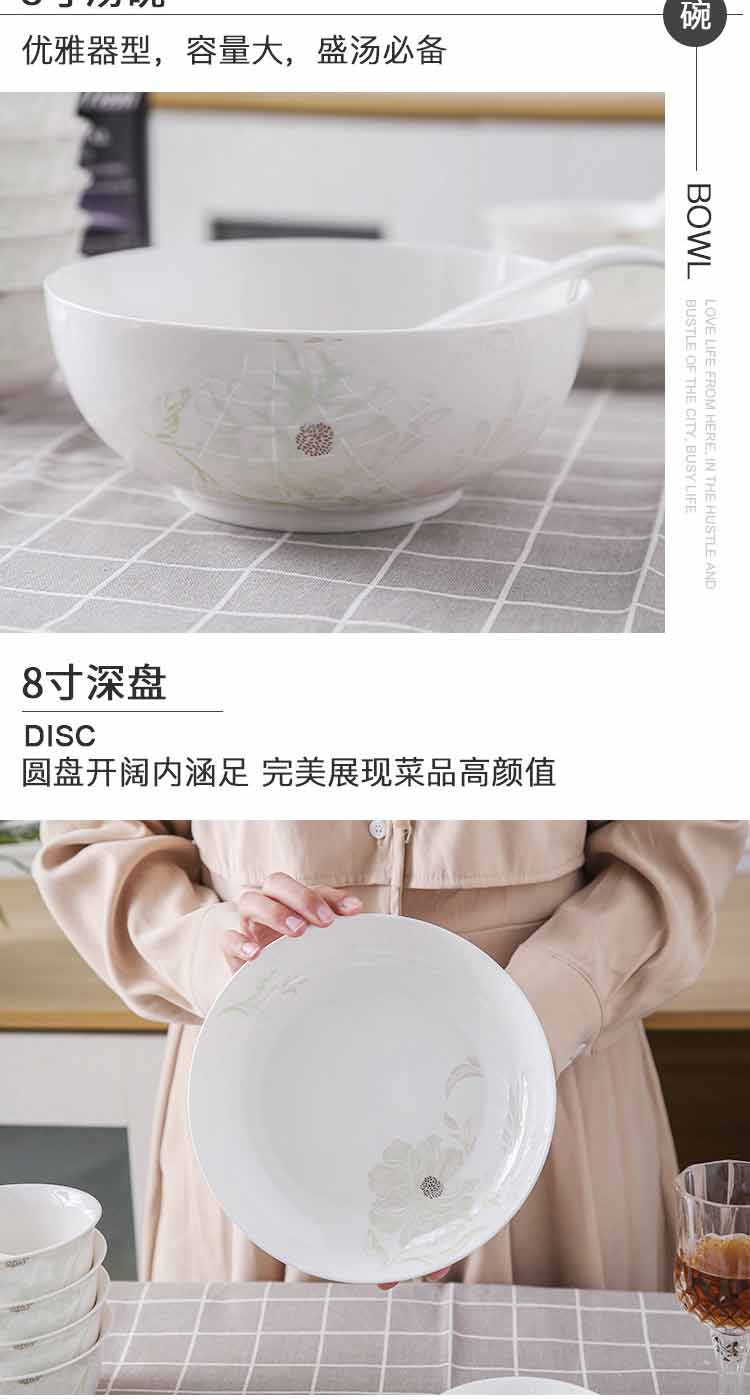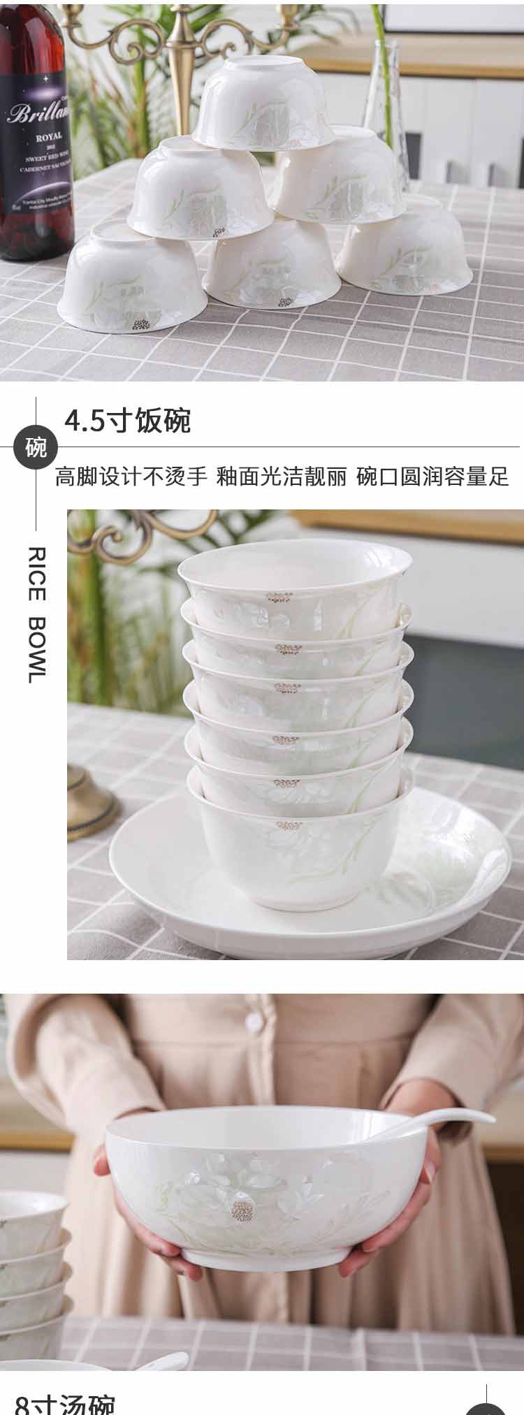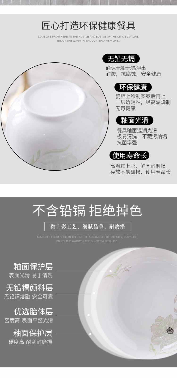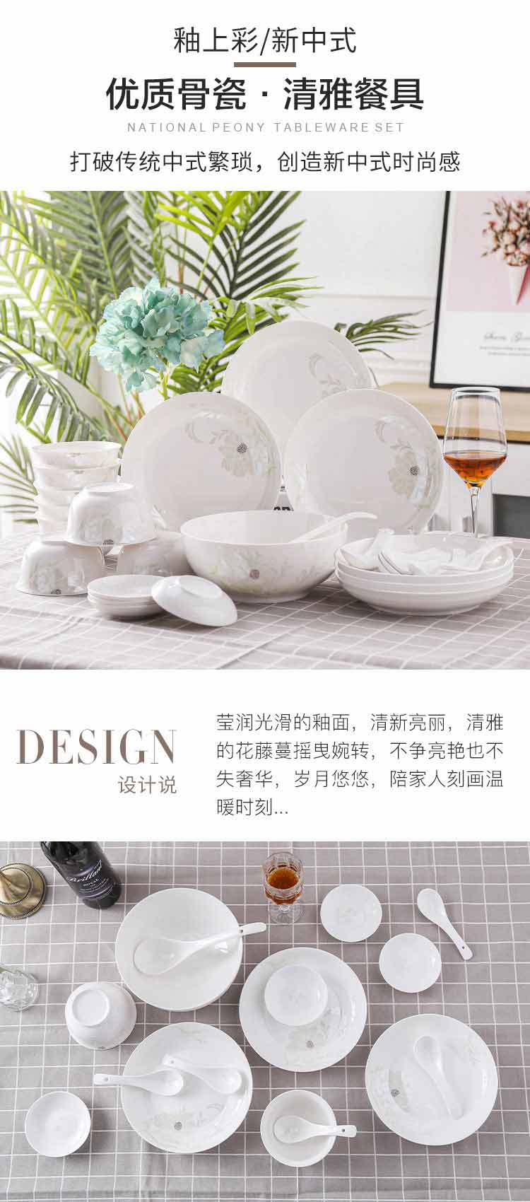商品名称:珊兰中式陶瓷28件套清雅餐具套装釉上彩碗碟SL-2802C