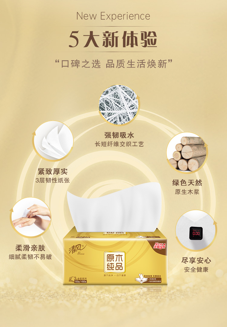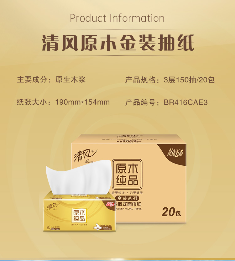 商品名称:清风金装原木150抽20包M号154*190mm(偏远地方不能发货) 图片色