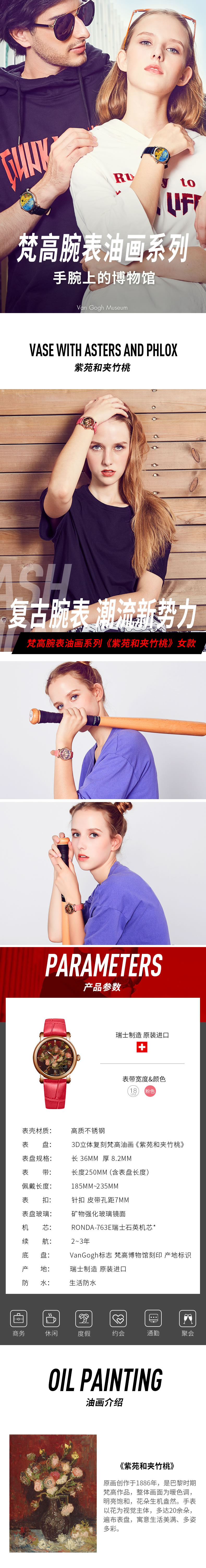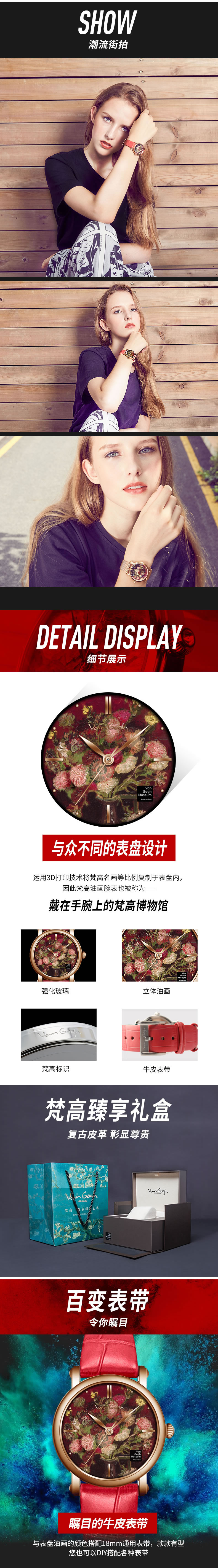 商品名称:梵高(VanGogh)瑞士女士石英手表 3D打印油画表面牛皮表带个性网红潮牌博物馆正版原装进口女表 紫苑和夹竹桃 玫瑰金