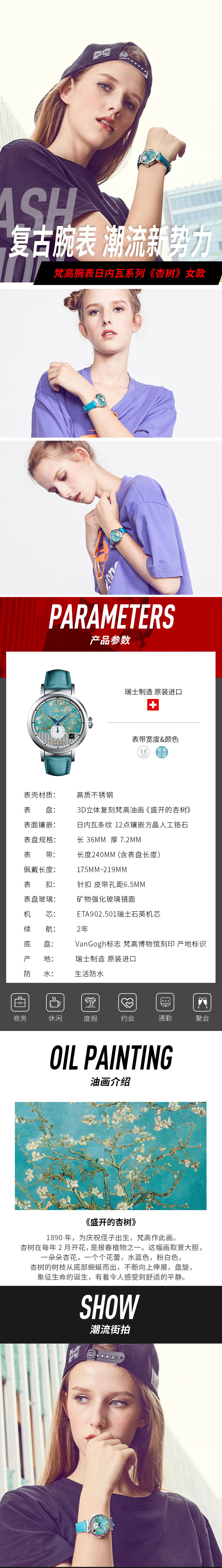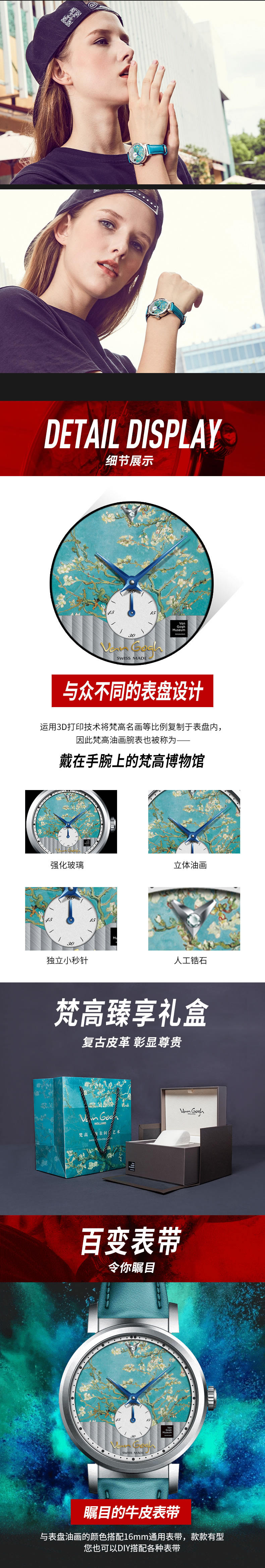 商品名称:梵高(VanGogh)瑞士手表 【日内瓦系列 女款】小秒针牛皮表带博物馆文艺礼物 盛开的杏树 个 绿色
