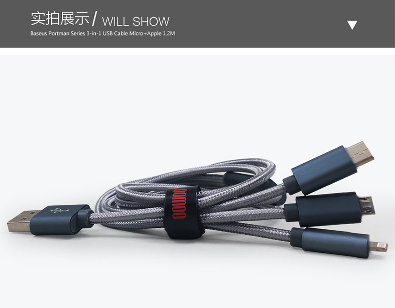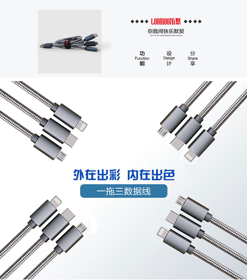 商品名称:乐默LOOMOO编织绳一拖三数据线 LCB-109 红色