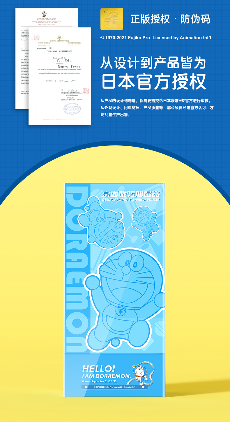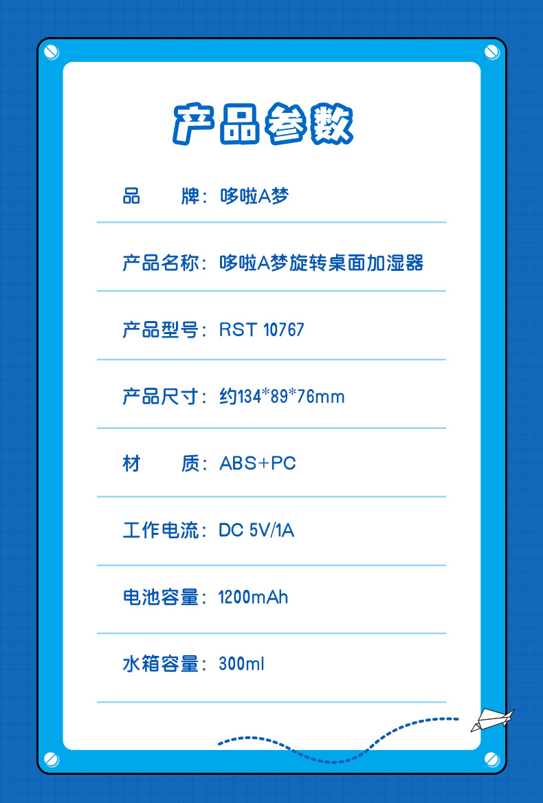 商品名称:one2ten 哆啦A梦旋转桌面加湿器 RST10835(单位:个) 水蓝色