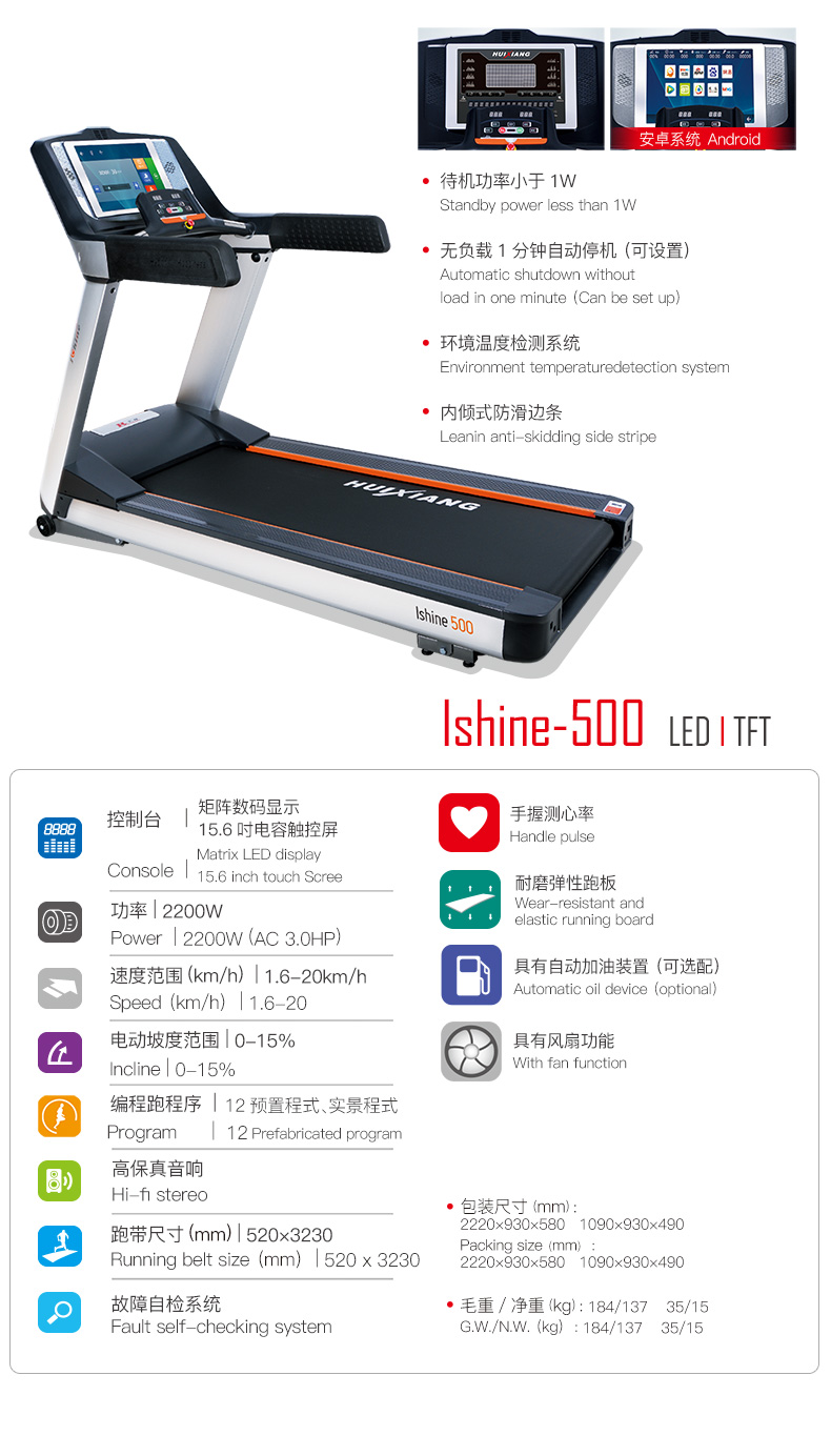商品名称:汇祥 Huixiang 商用跑步机 爱心500LED-AC(蓝屏) 黑色
