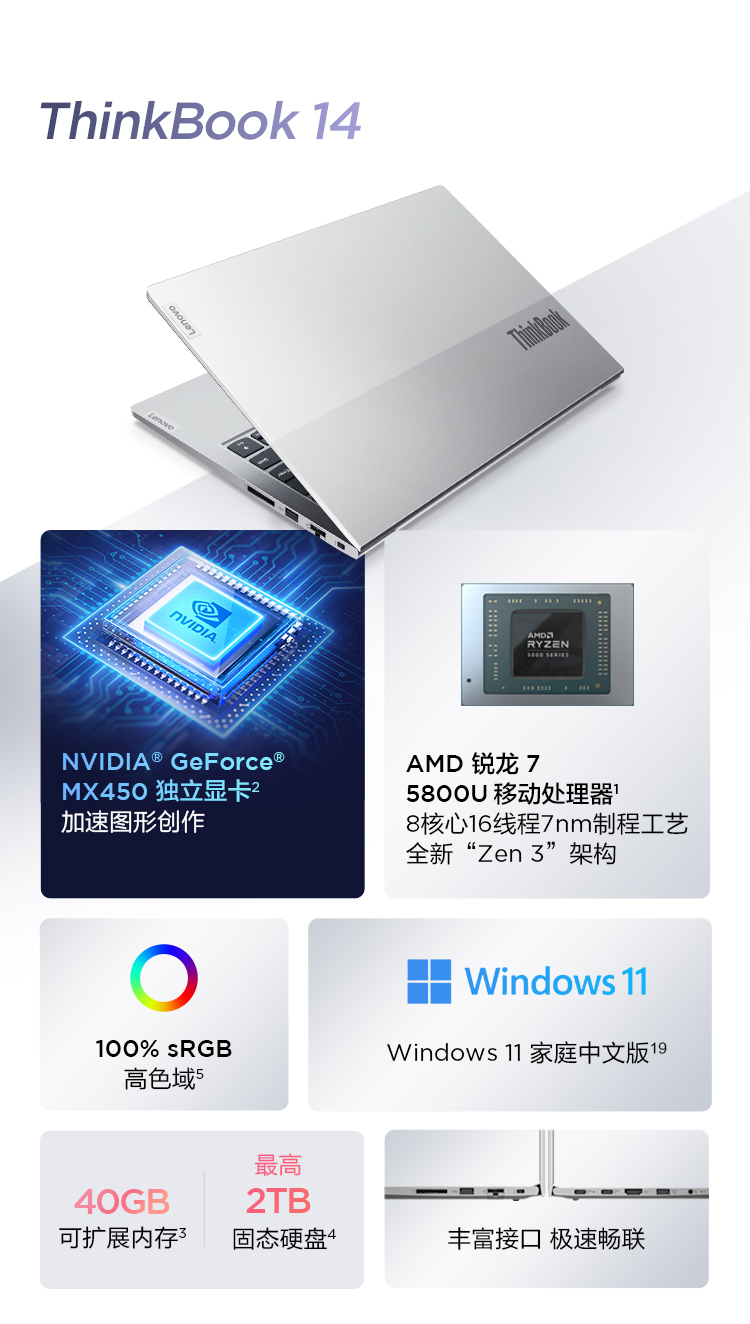 商品名称:联想 BGCD R5-5600U/16G/512G-----高清屏ThinkBook 14 黑色