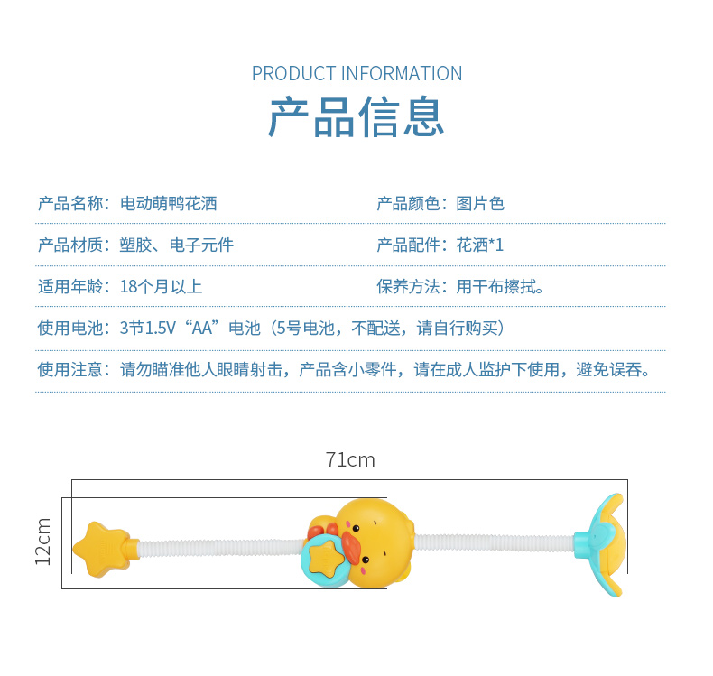 商品名称:婴侍卫 宝宝洗澡喷水玩具 电动萌鸭花洒 801D(单位:只) 黄色