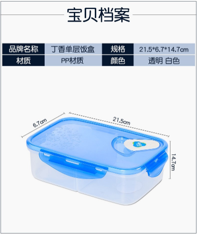 商品名称:茶花2765丁香单层饭盒1.15L2765 蓝色