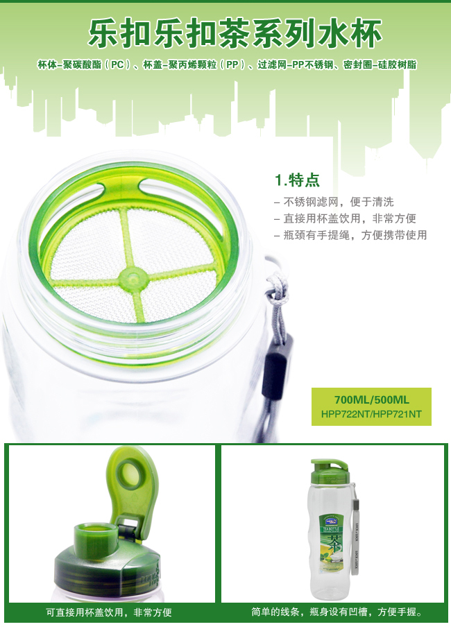 商品名称:乐扣乐扣炫彩手提运动水壶500ml HPP721TR/TG/TB 蓝色