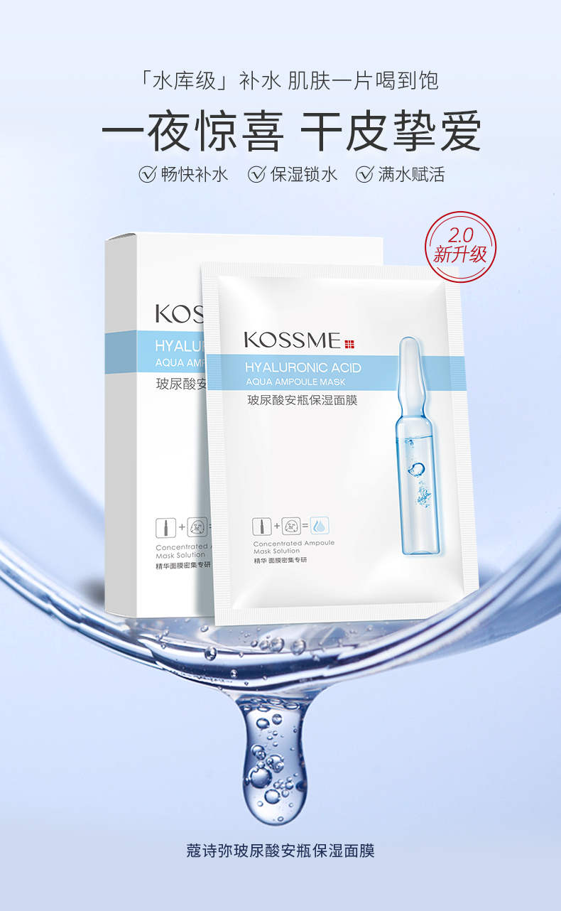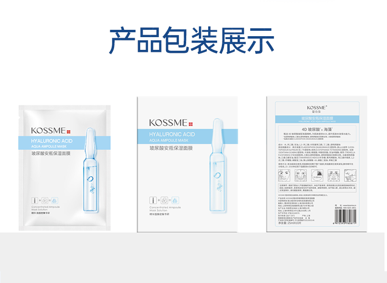 商品名称:蔻诗弥(kossme) 玻尿酸安瓶保湿面膜 10片 保湿 舒缓 紧致(单位:盒)白色