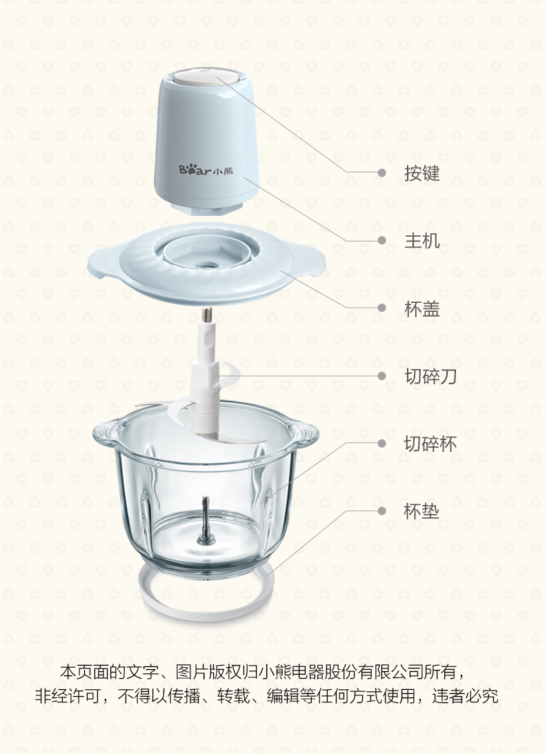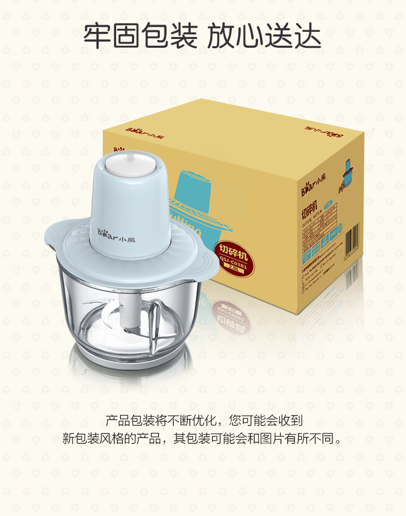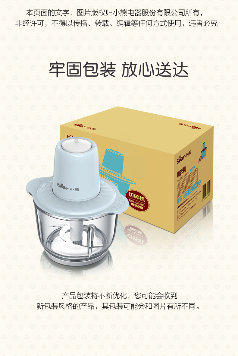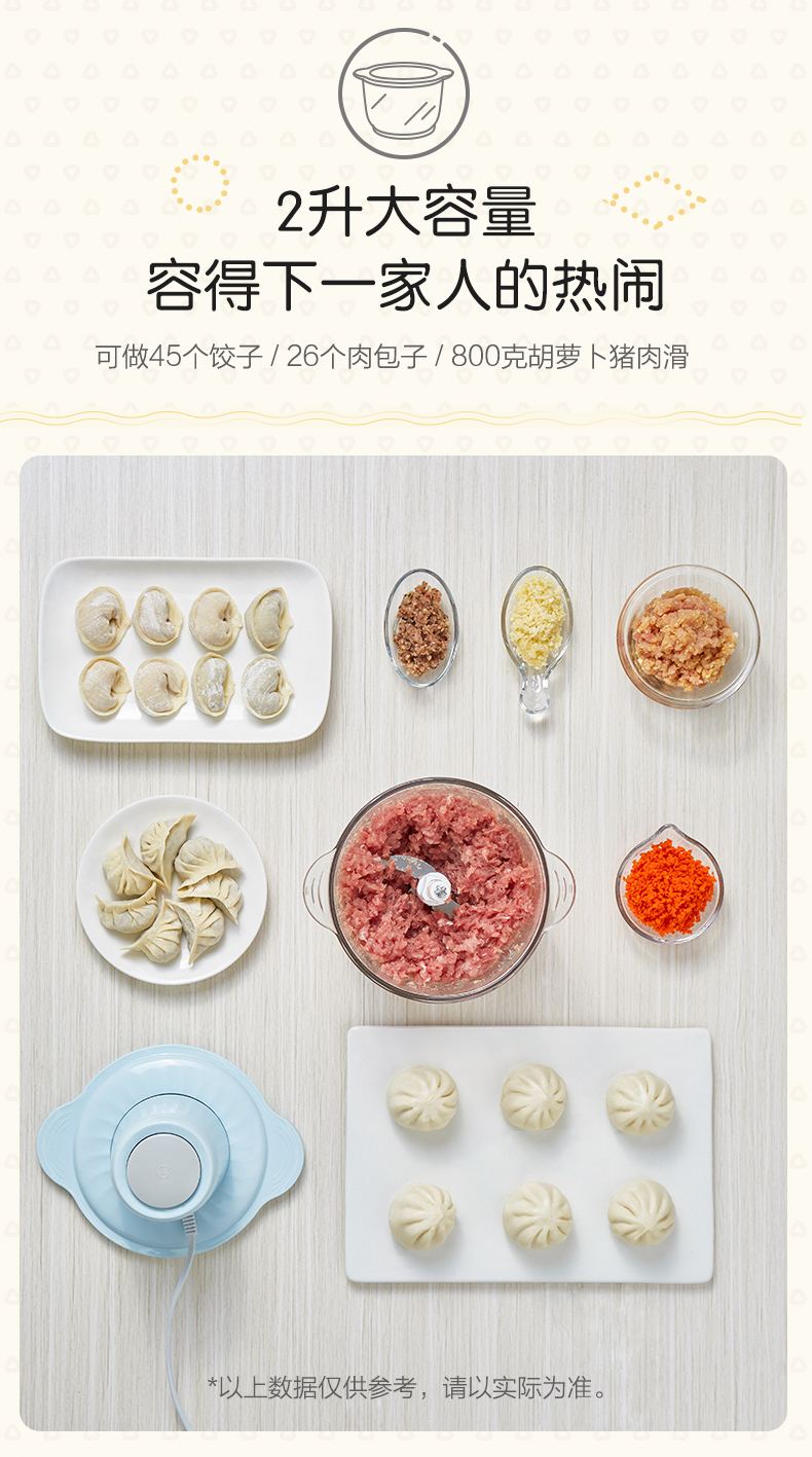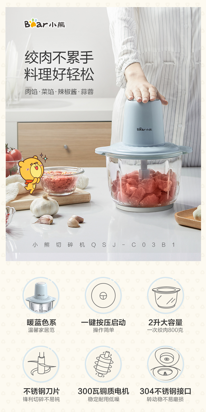 商品名称:小熊(Bear)绞肉机家用料理机QSJ-C03B1 2L单位:个 天蓝色