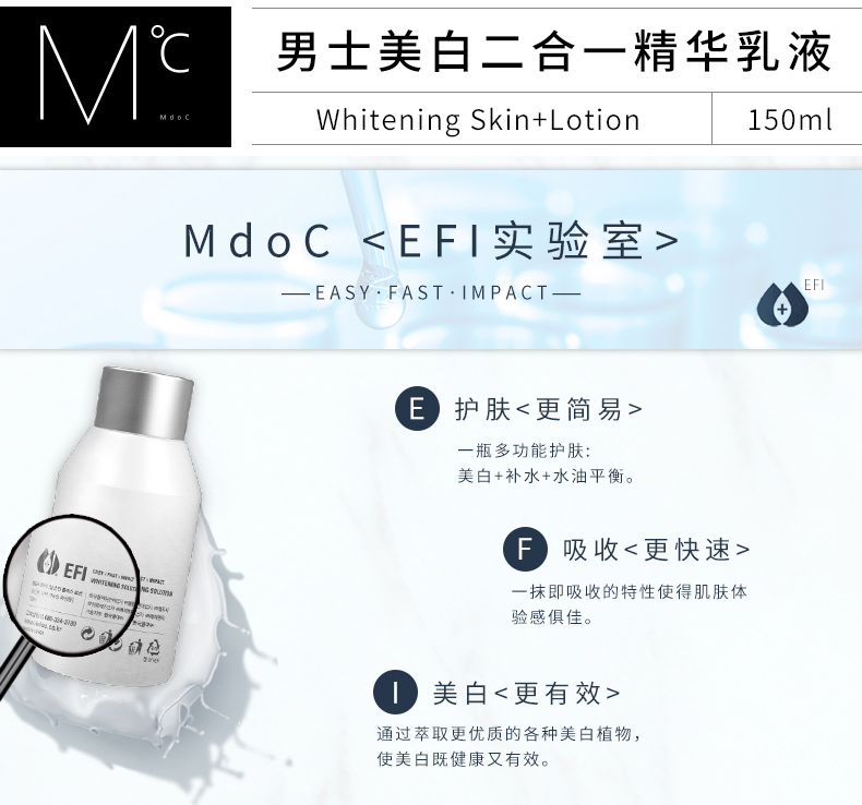 商品名称:蒙度士(MdoC) 男士美白二合一精华液150ml(单位:瓶) 白色