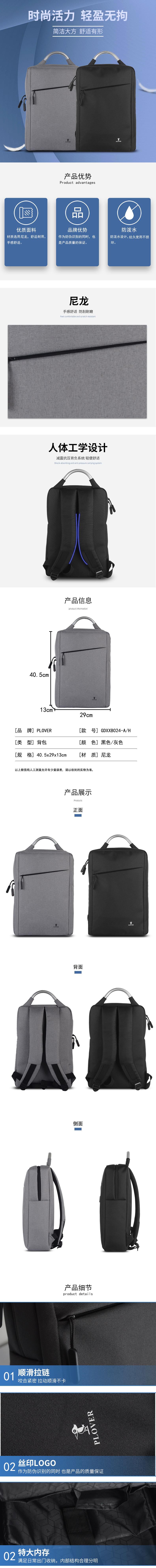 商品名称:PLOVER香港啄木鸟防水尼龙双肩背包GDXXB024 黑色/A