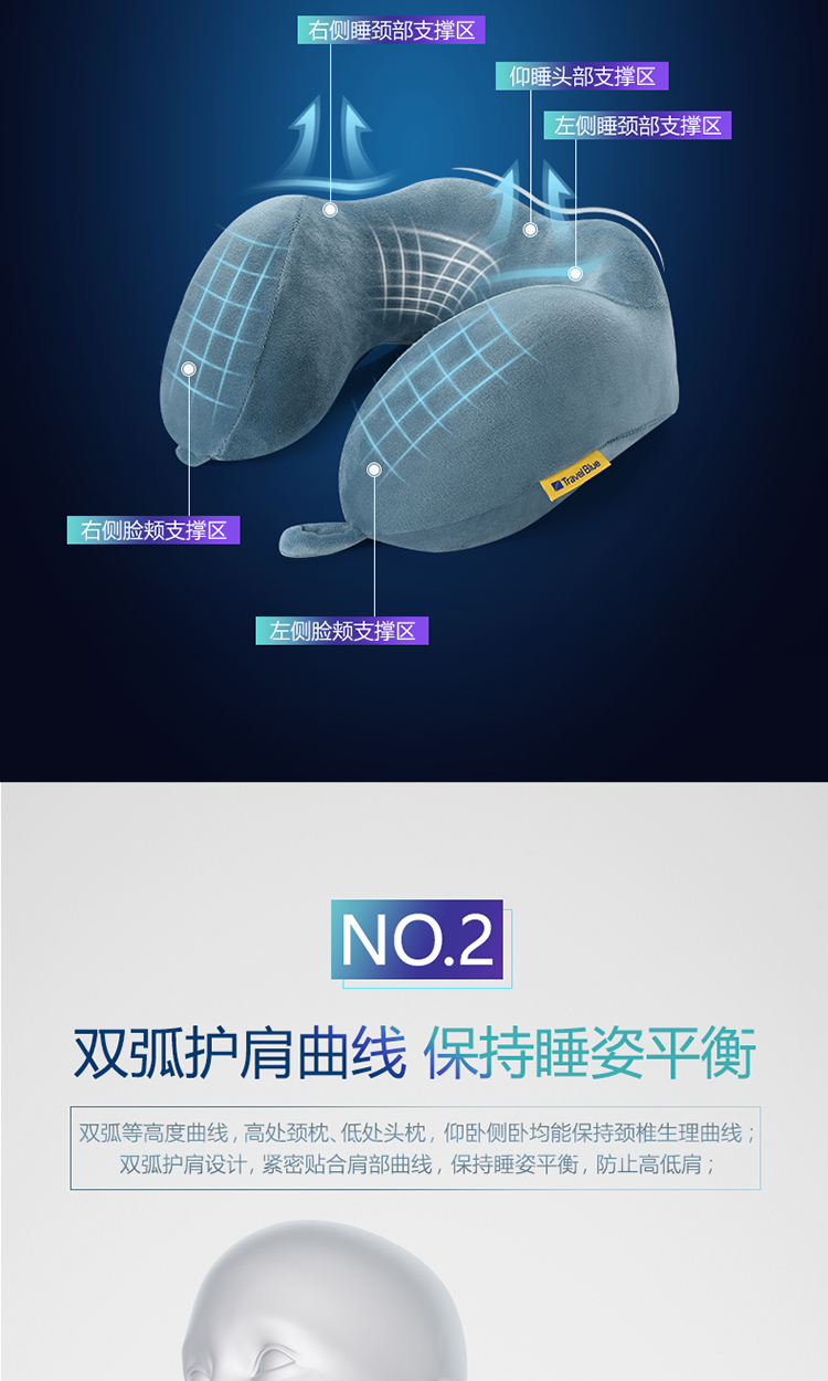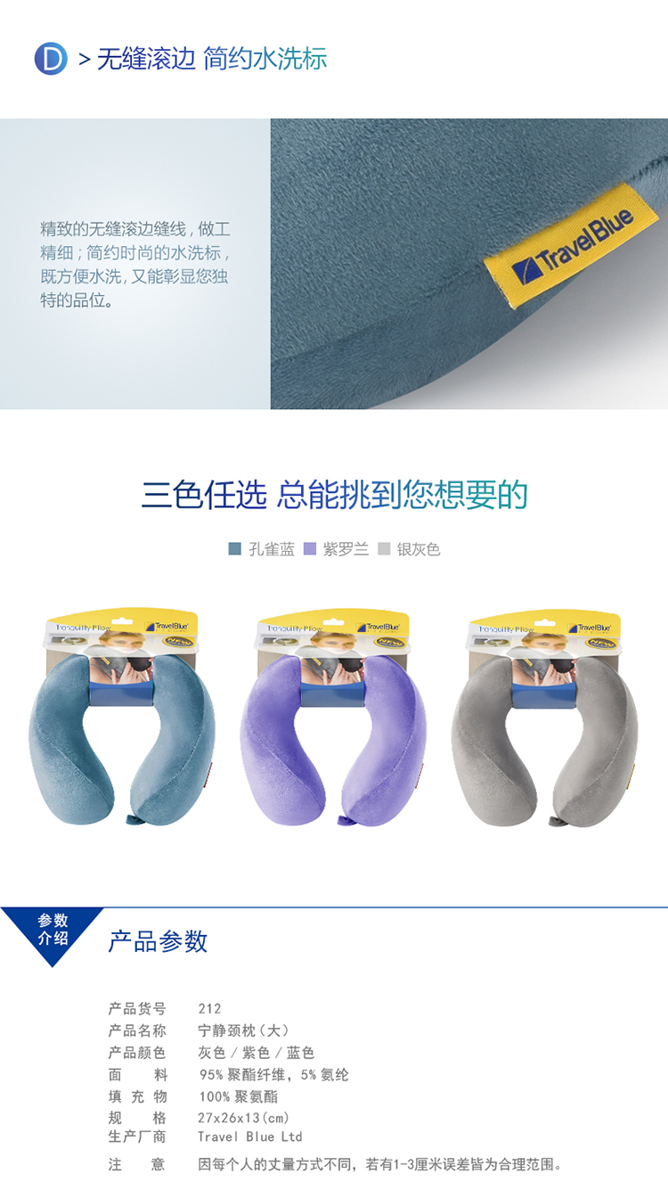 商品名称:Travel Blue蓝旅 宁静颈枕-大 212 蓝色