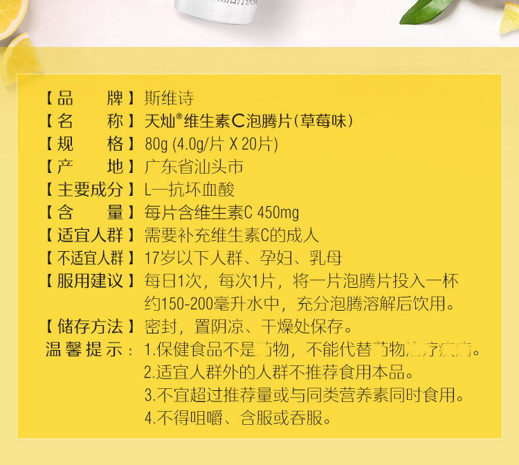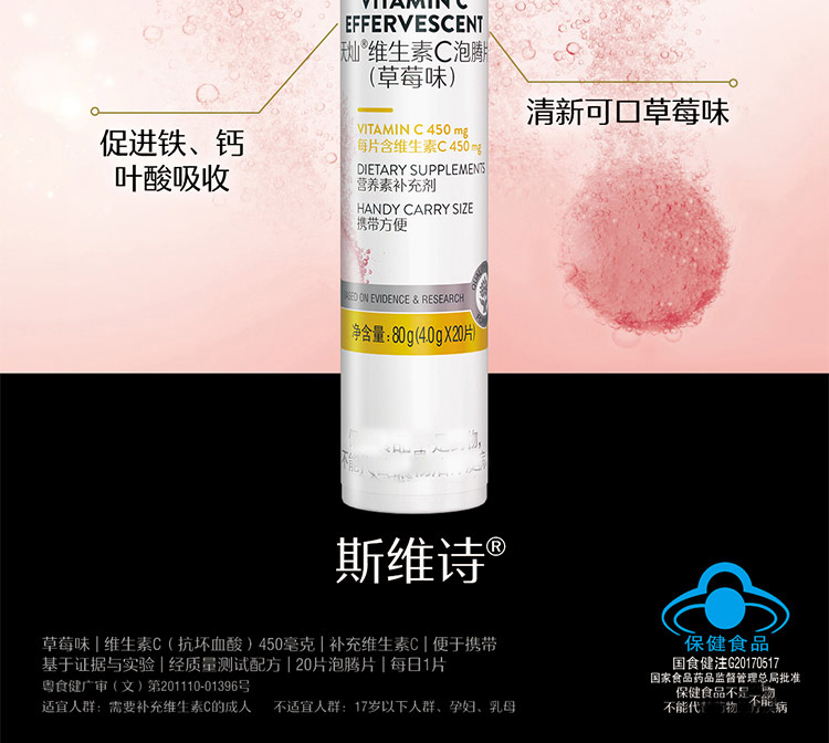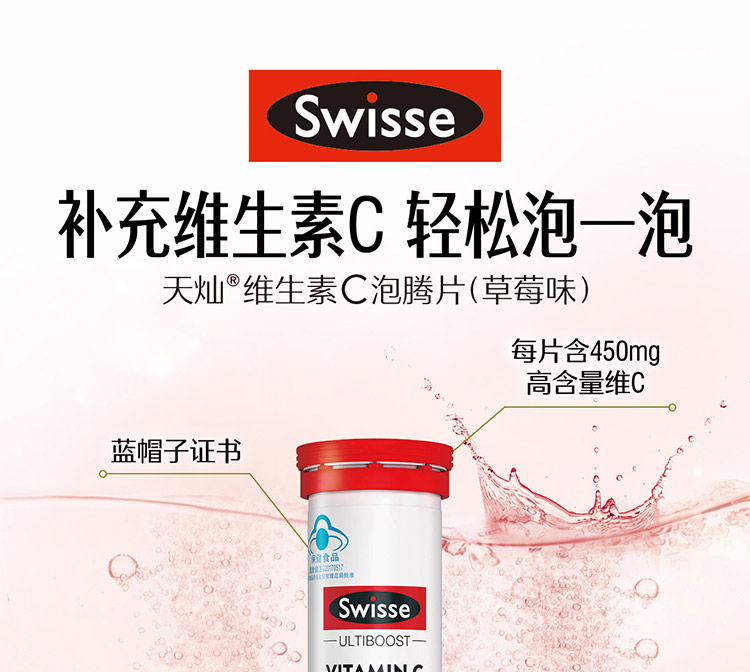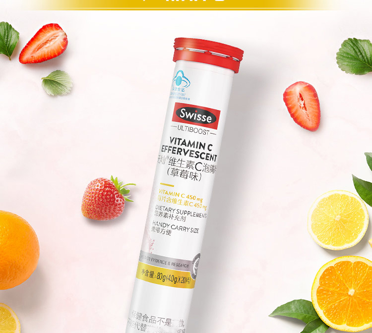 商品名称:Swisse天灿维生素C泡腾片(草莓味)80g/支 (4g/片*20片) 图片色 图片色