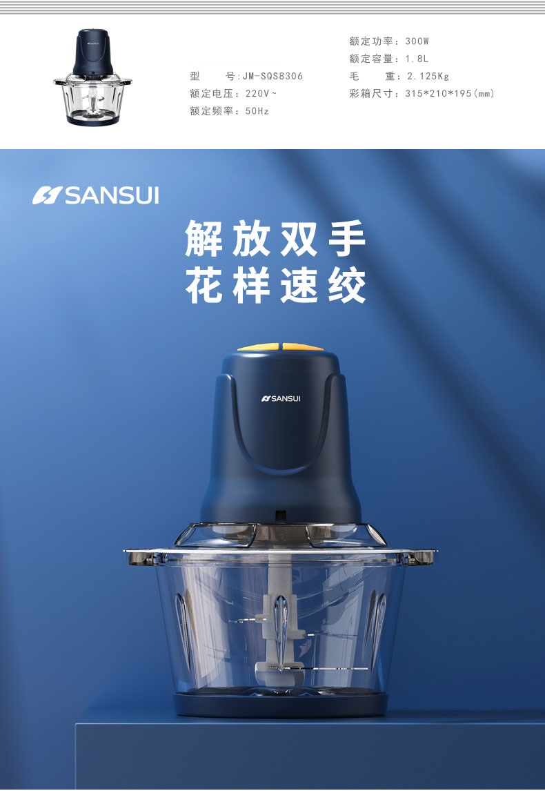 商品名称:山水 多功能食品加工机 JM-SQS8306(单位:台) 蓝色
