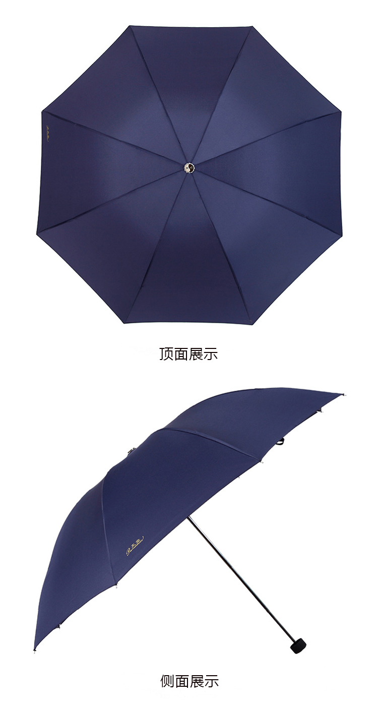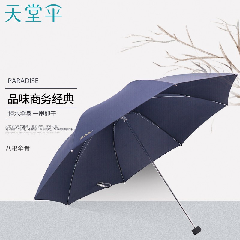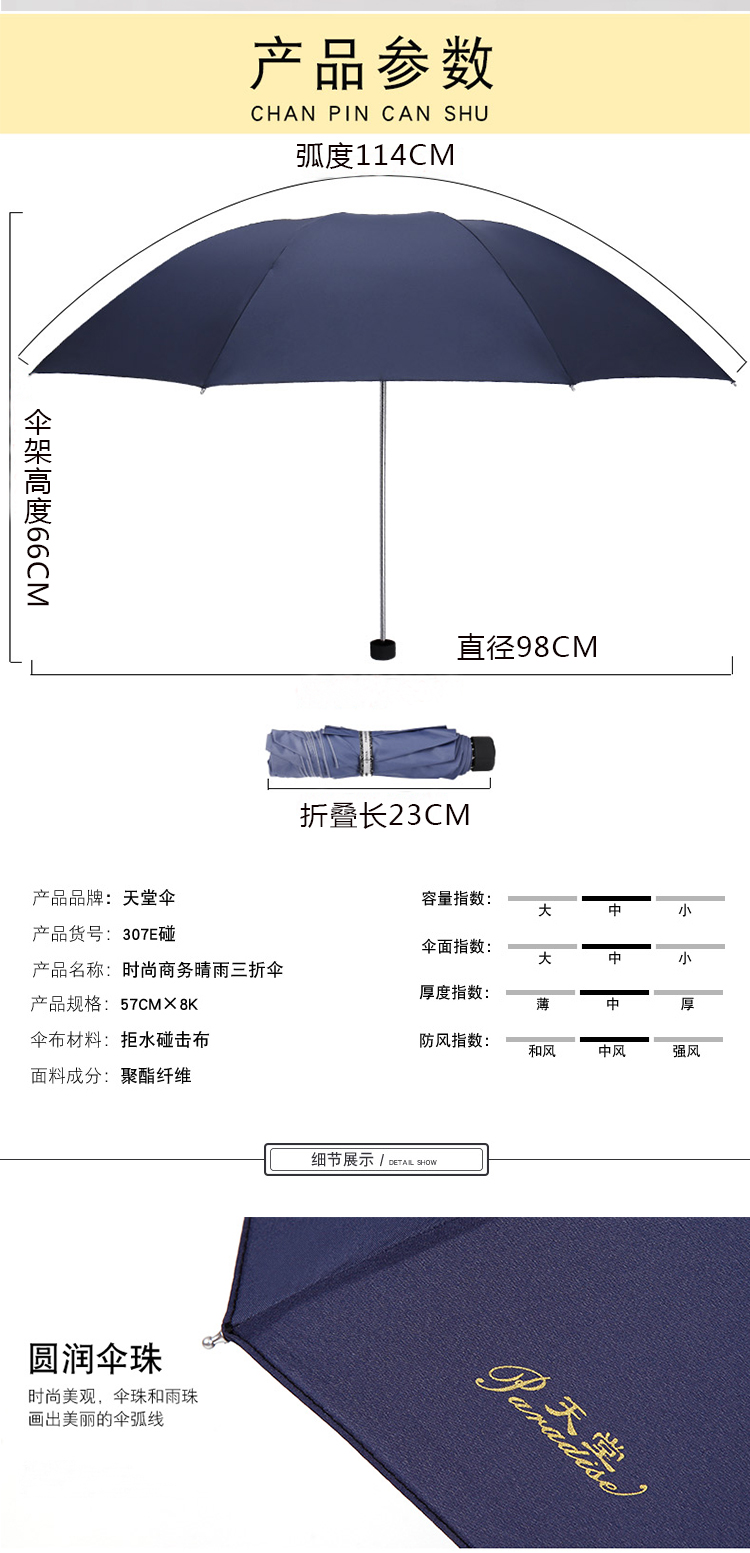 商品名称:天堂伞 三折晴雨伞碰击布经典商务伞57cm*8骨307E(单位:把) 深蓝色