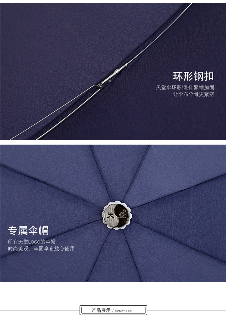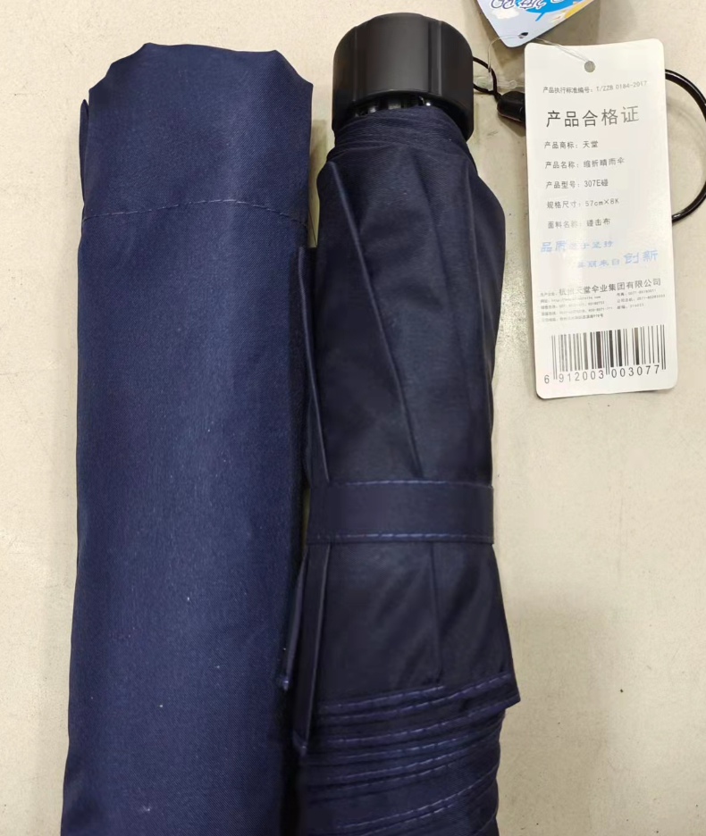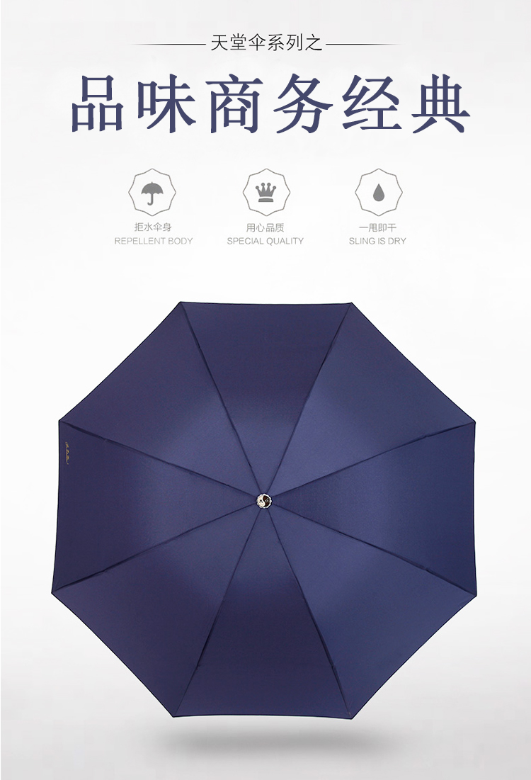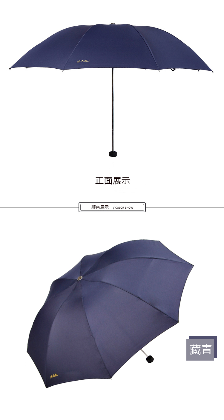 商品名称:天堂伞 三折晴雨伞碰击布经典商务伞57cm*8骨307E(单位:把) 深蓝色