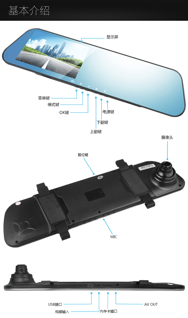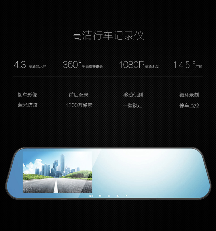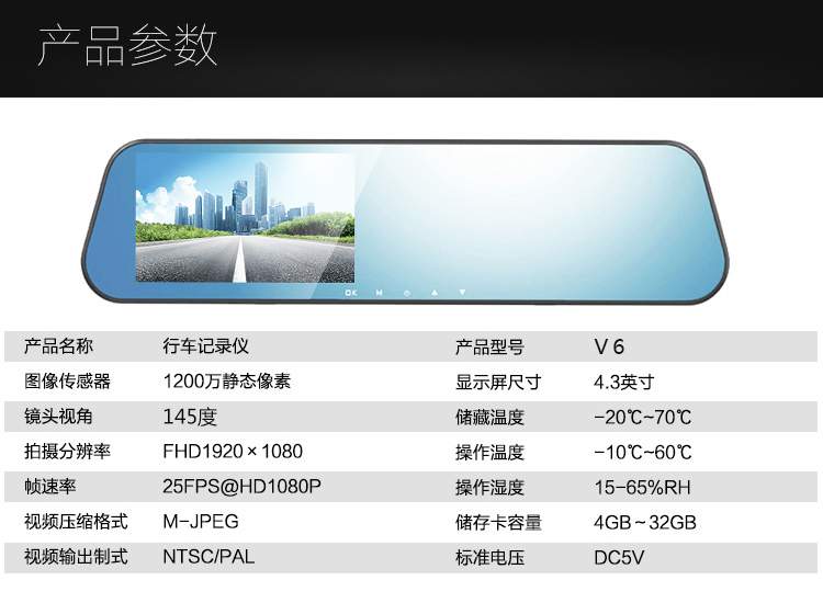 商品名称:半岛铁盒 后视镜双录行车记录仪V6 个 黑色
