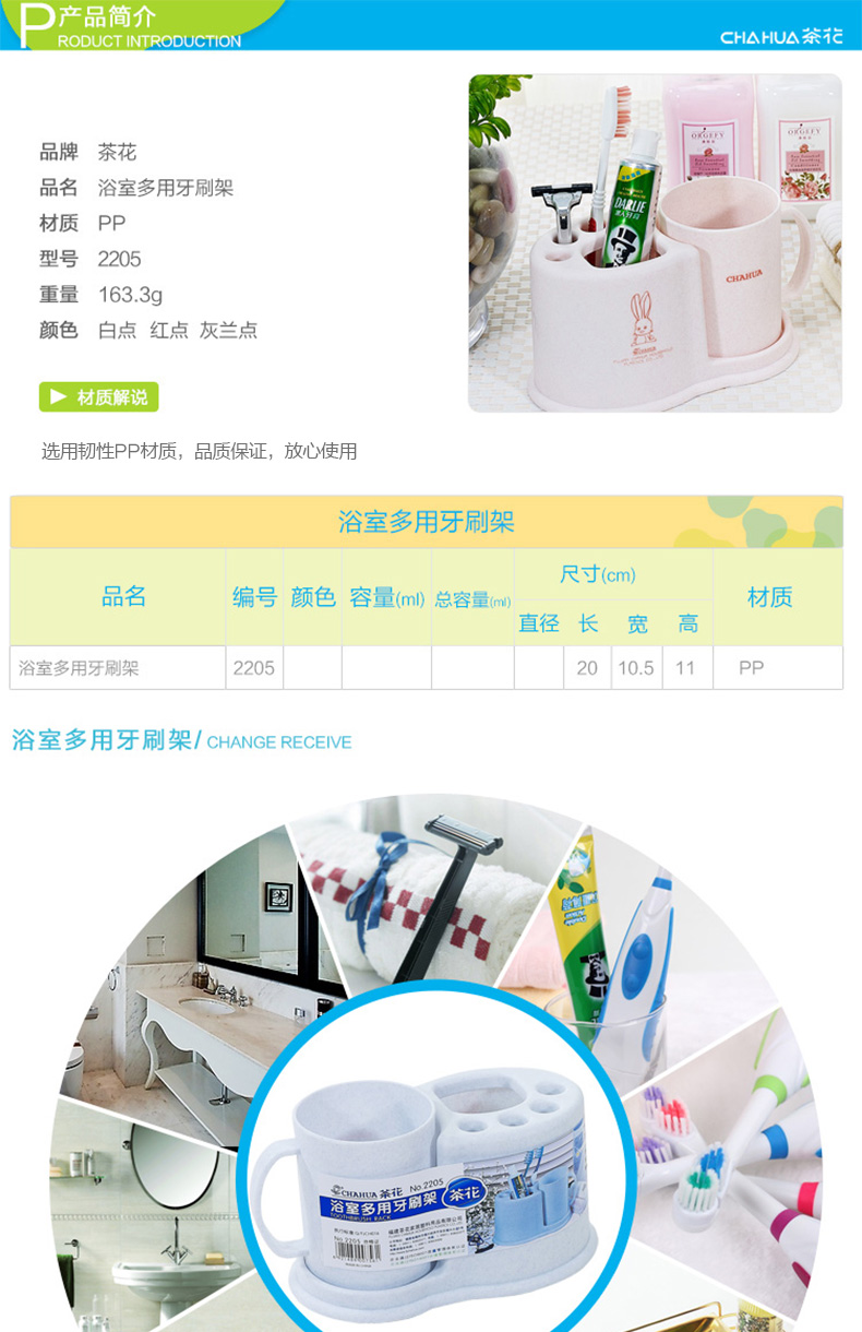 商品名称:茶花浴室多用牙刷架2205 随机 随机