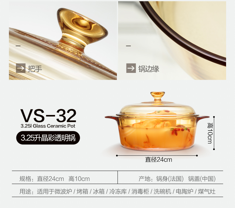 商品名称:康宁VISIONS 晶彩透明锅3.25L黄盒 琥珀色