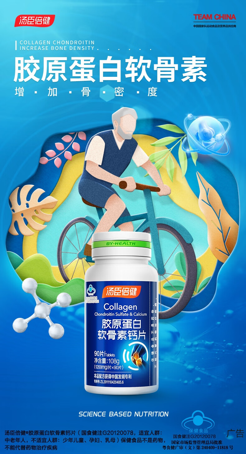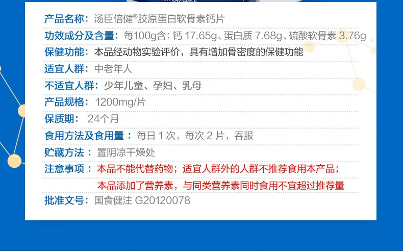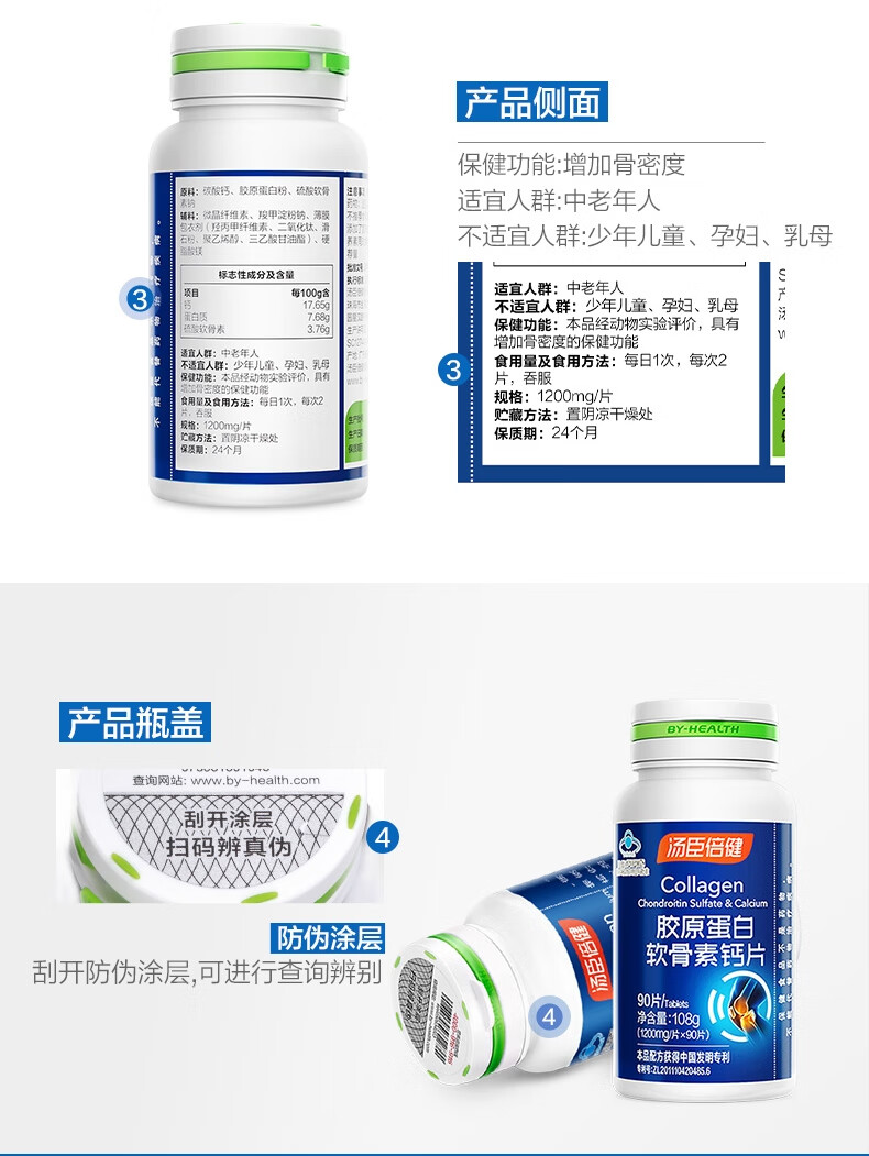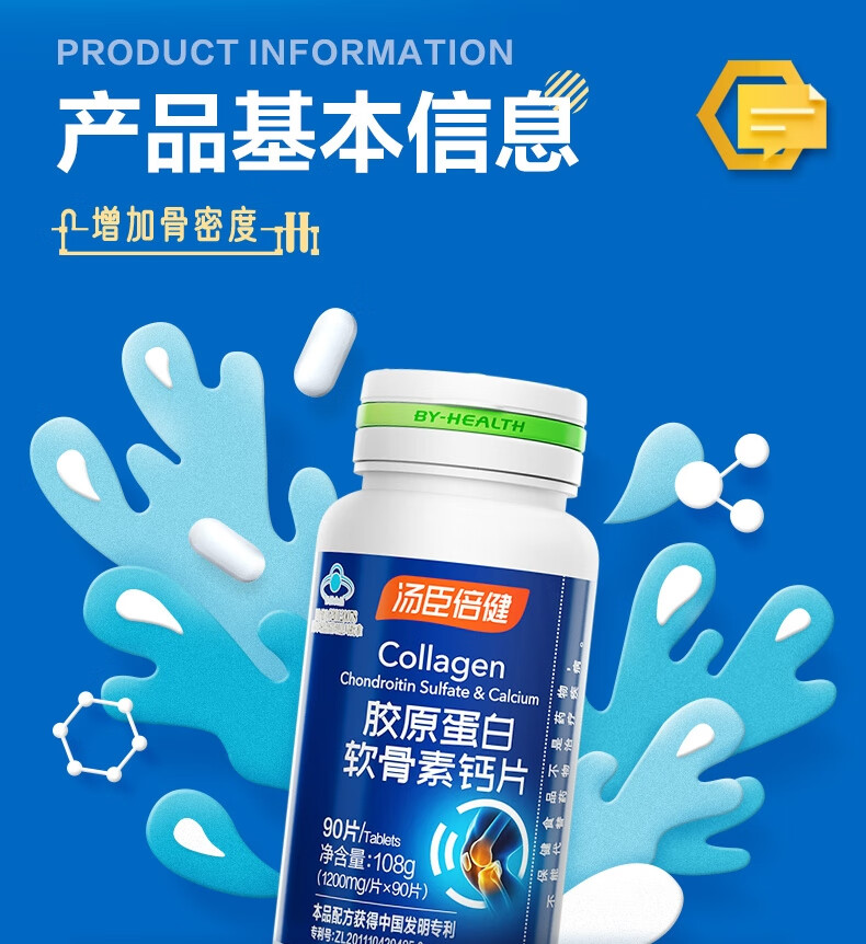 商品名称:汤臣倍健胶原蛋白软骨素钙片(90片)单位 瓶 蓝色