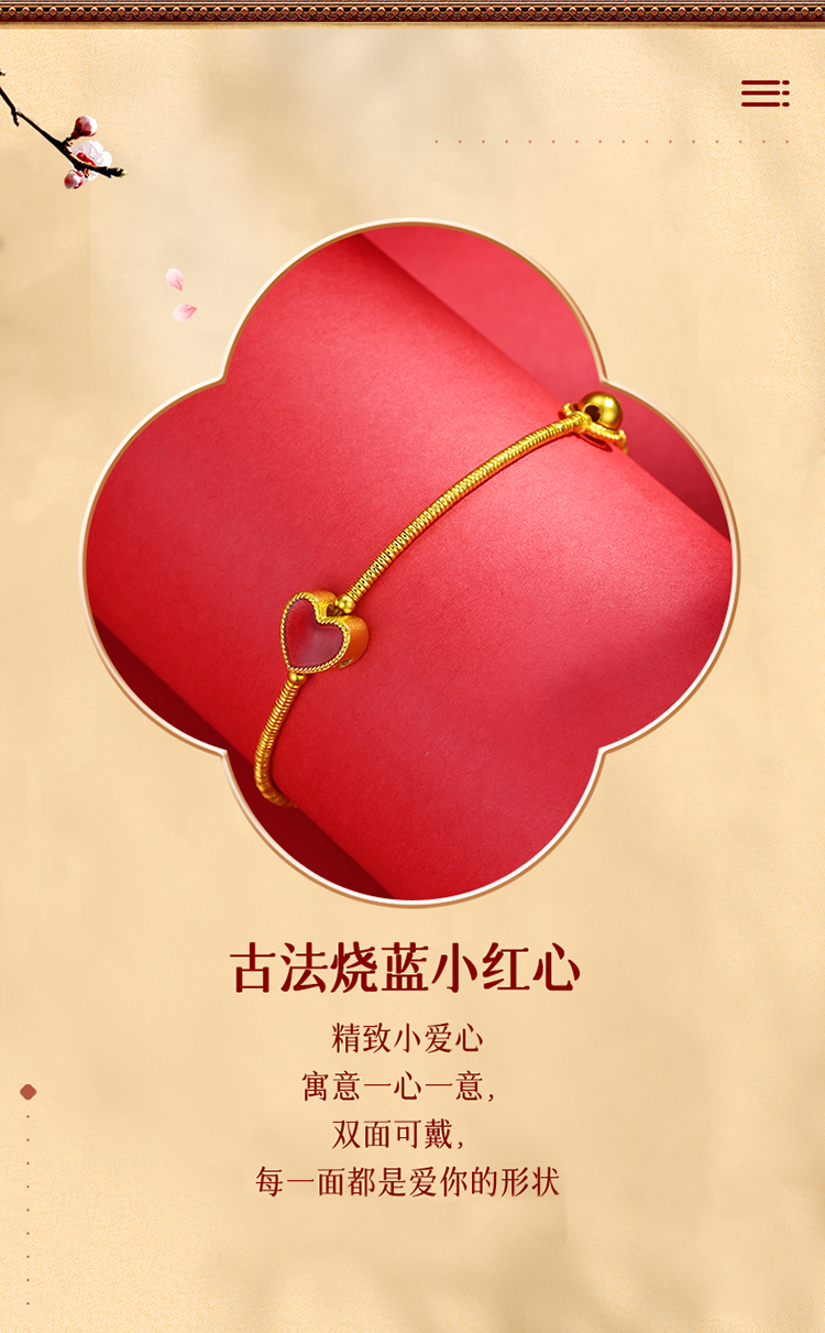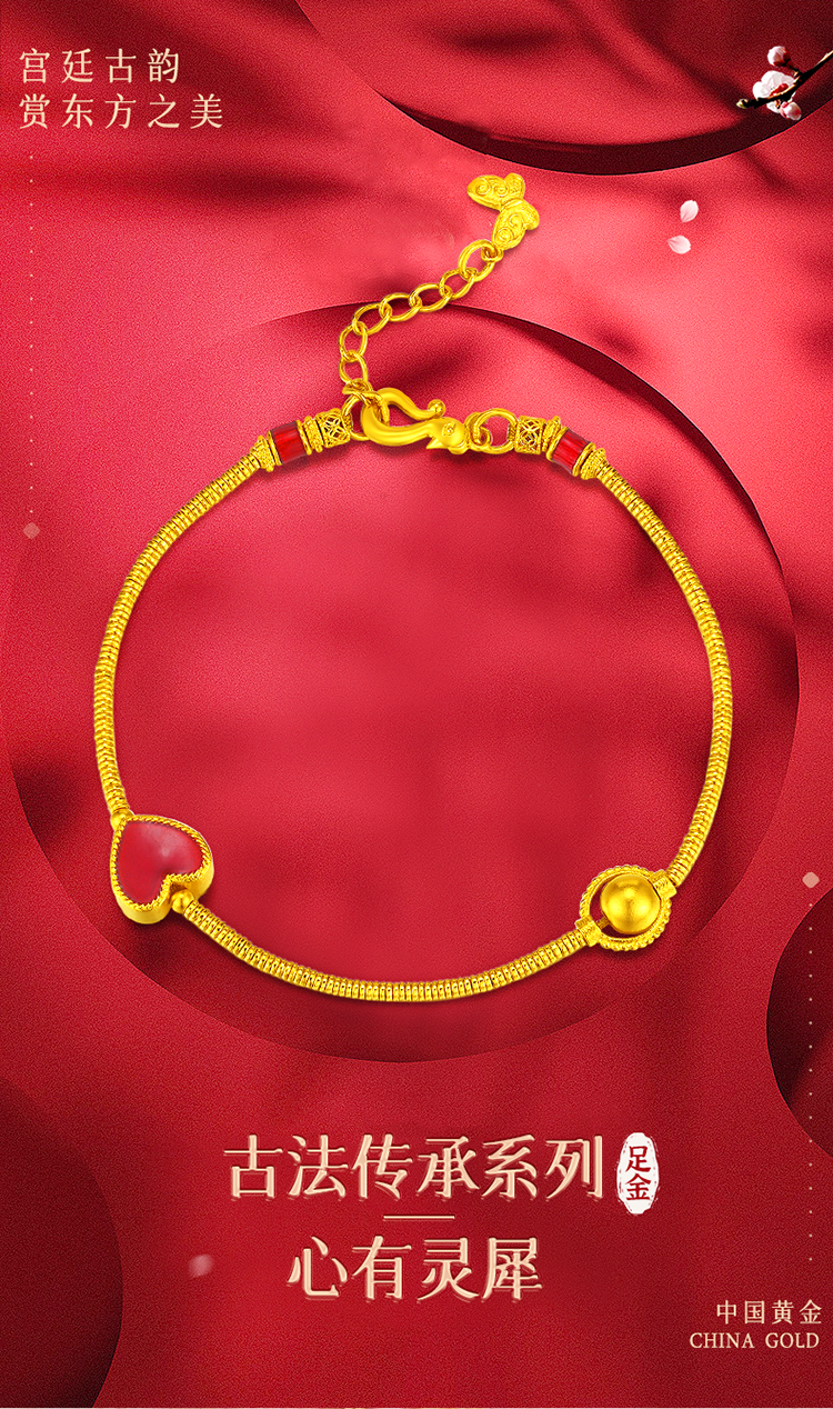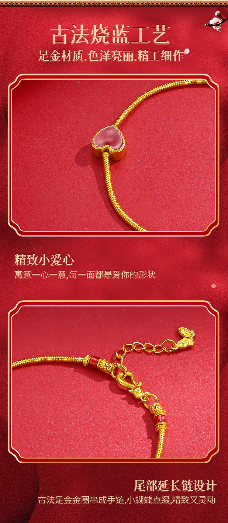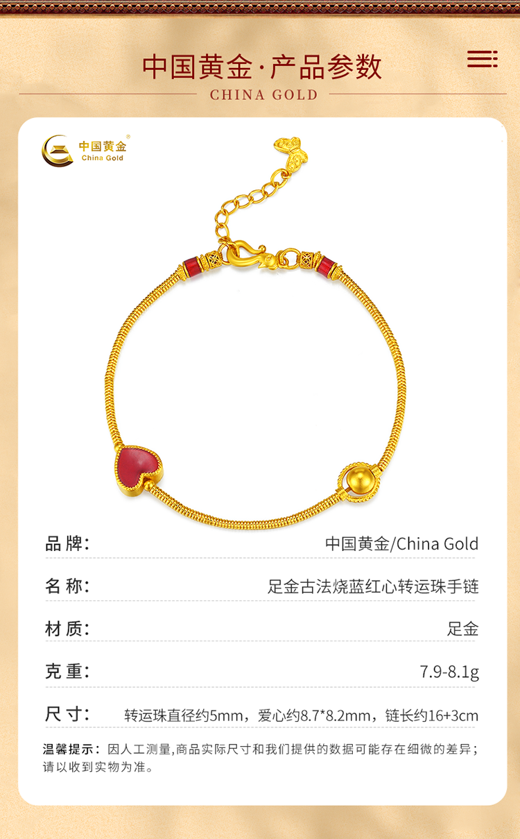商品名称:中国黄金 足金999古法烧蓝红心转运珠手链 ZGHJ230268(单位:件) 金色
