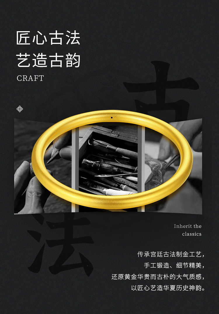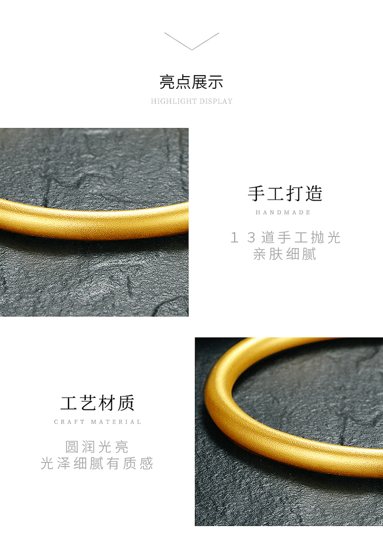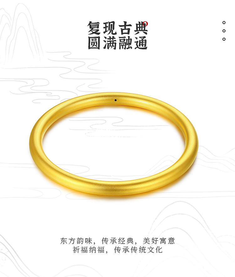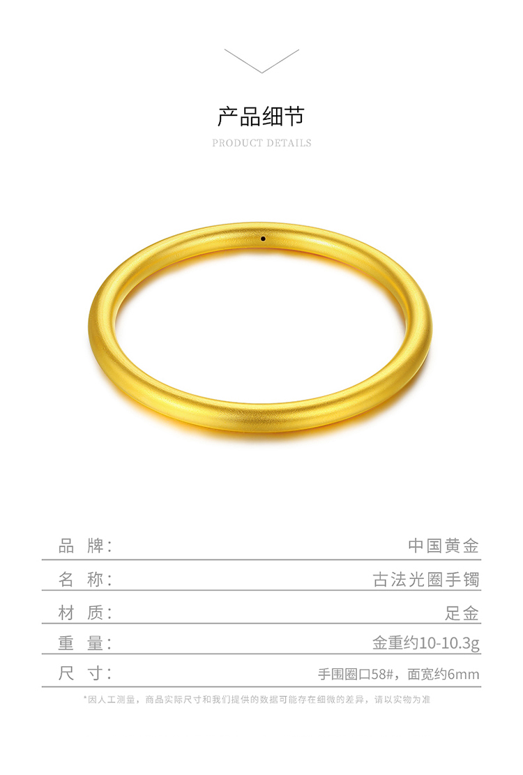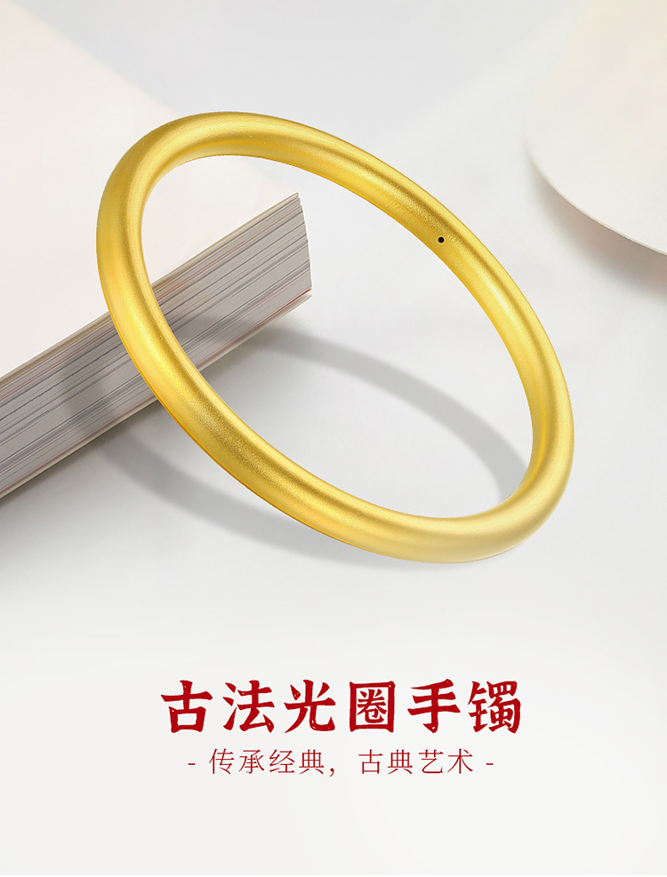 商品名称:中国黄金 古法光圈手镯-60# ZGHJ211192-2 金色