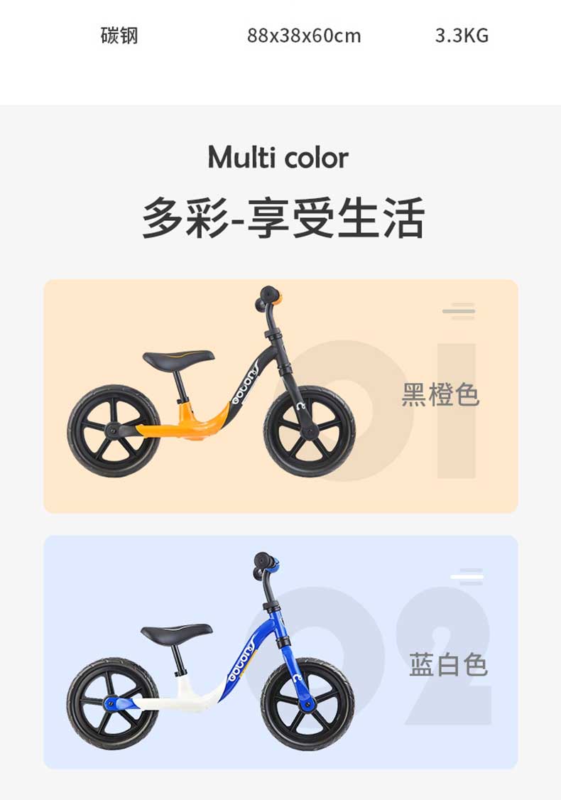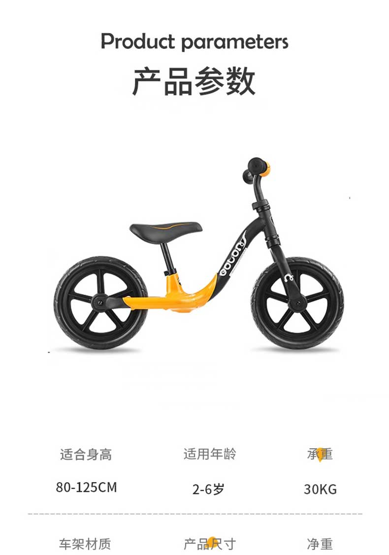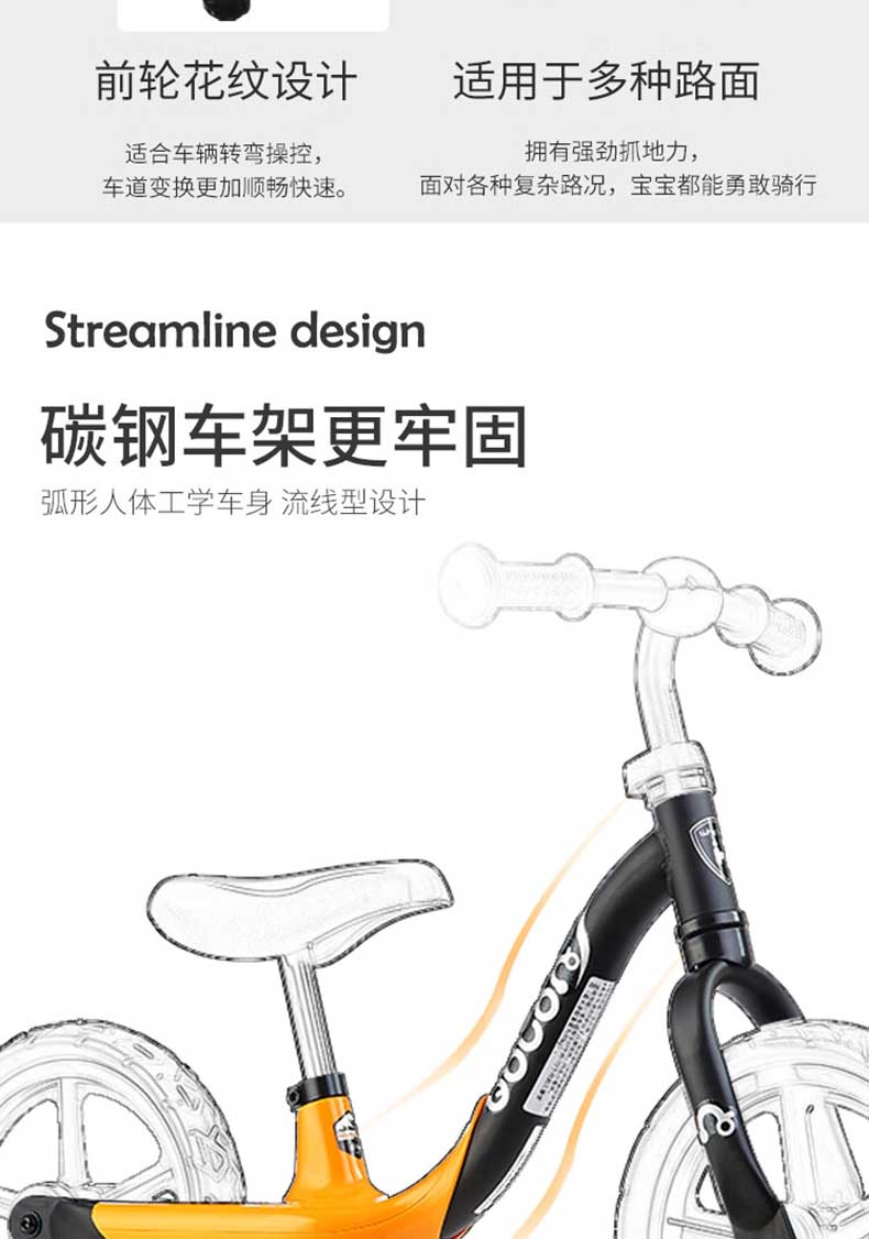 商品名称:荟智(Huizhi)儿童平衡车滑行车HP1215(单位:辆) 黑橙色