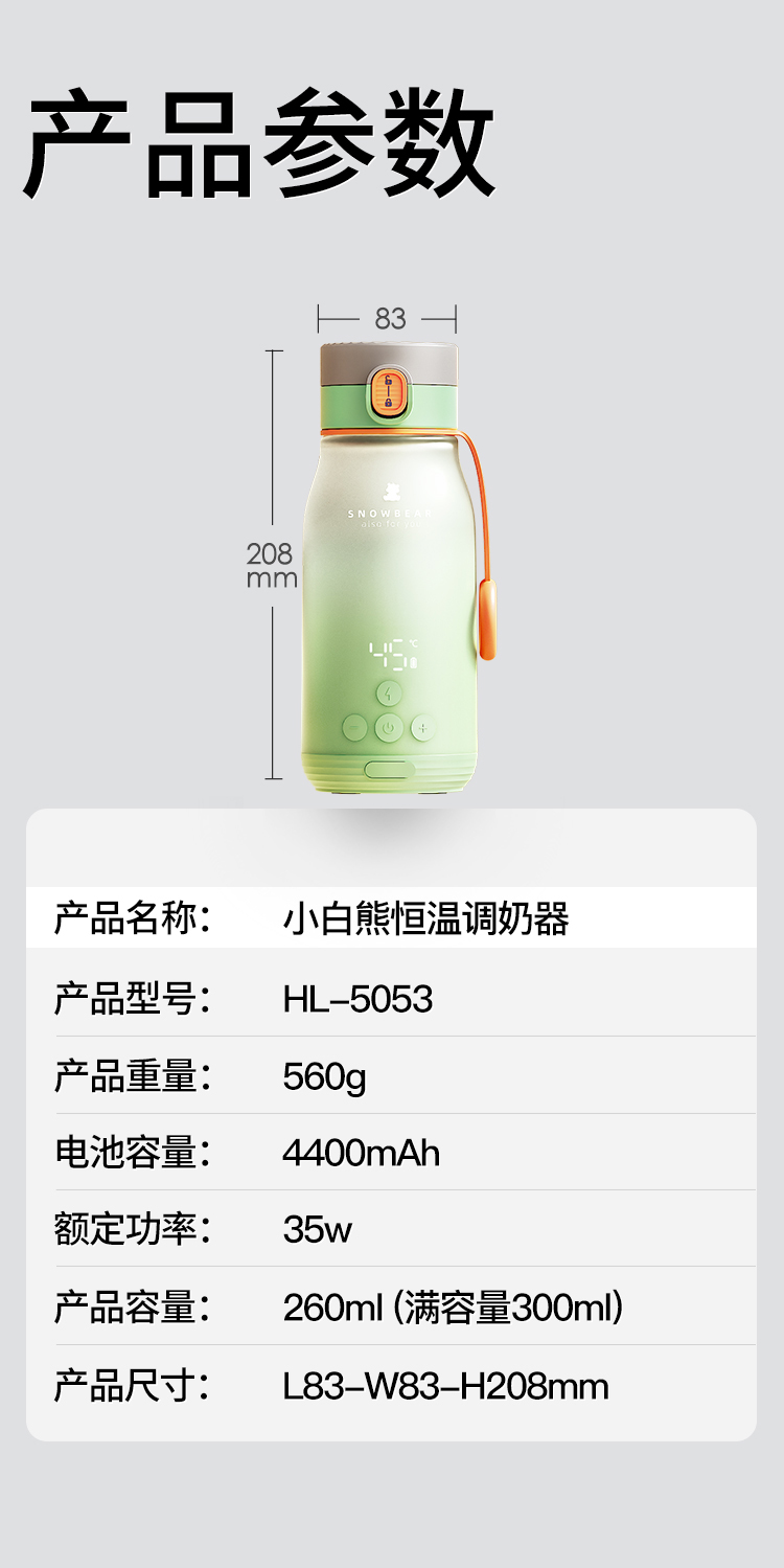 商品名称:小白熊 便携式恒温调奶器(绿色)HL-5053G 台 绿色