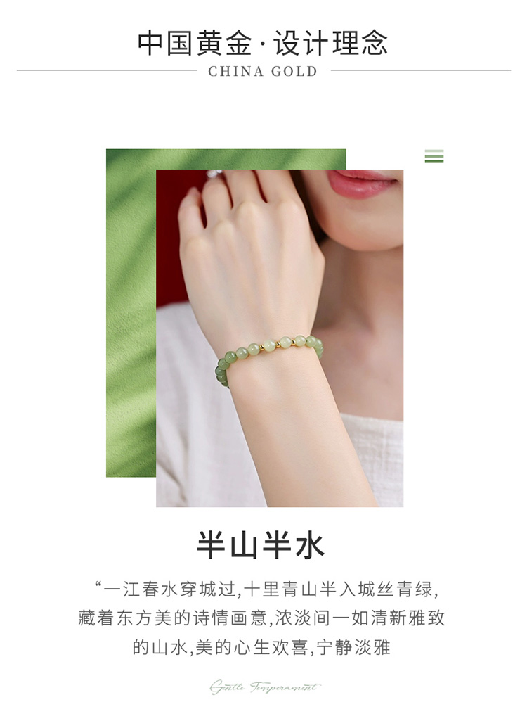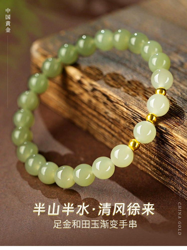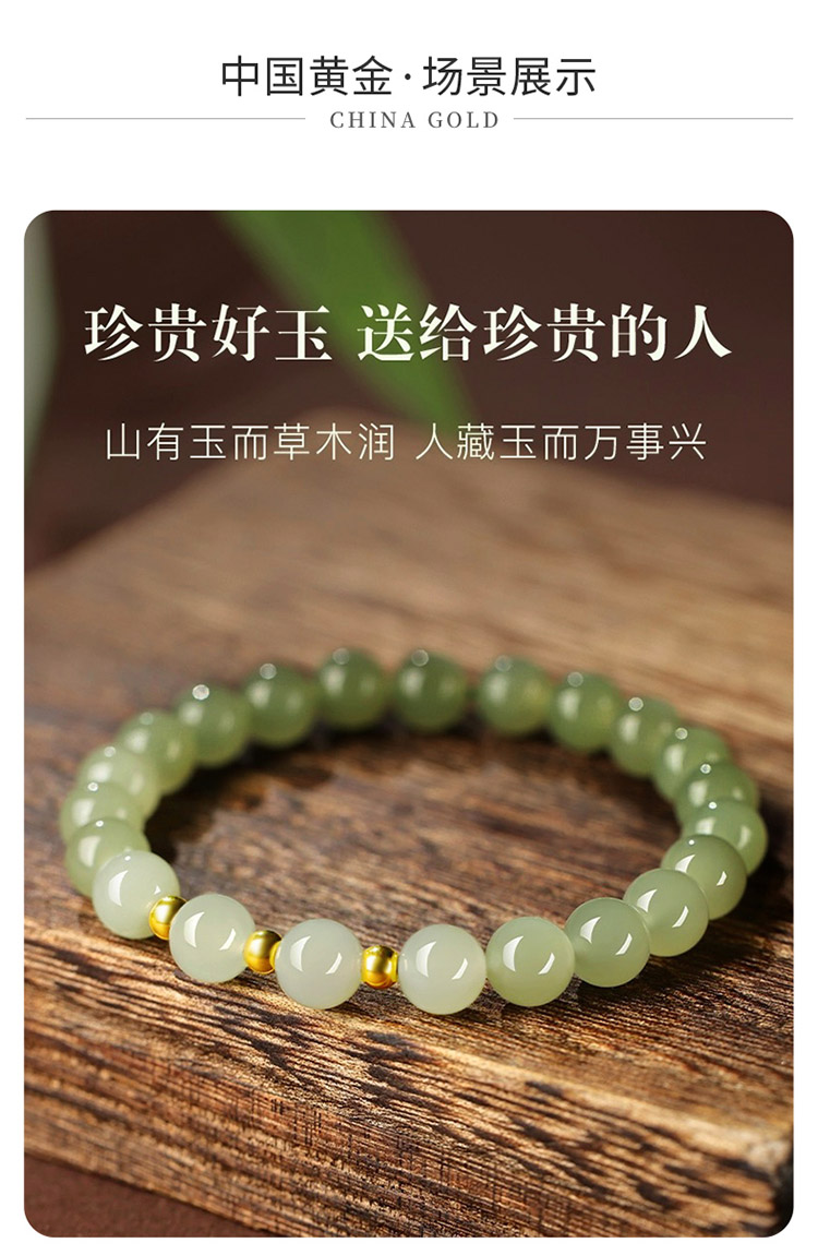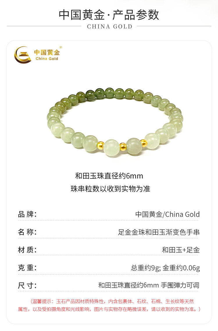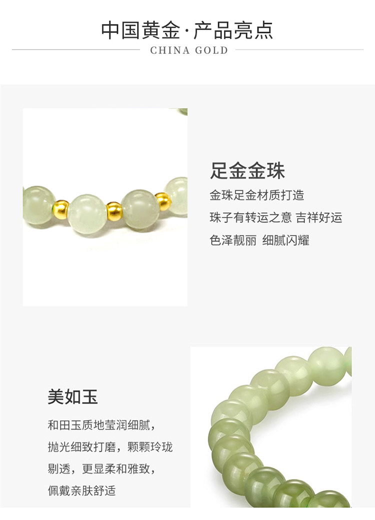 商品名称:中国黄金 足金金珠和田玉渐变手串 ZGHJ230416(单位:件) 金色