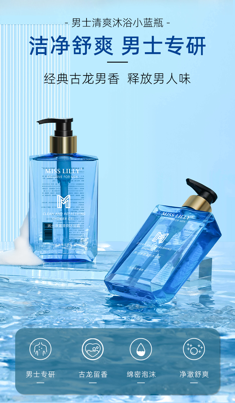 商品名称:蜜斯莉 男士净澈清爽沐浴露300ML (计价单位:瓶) 深蓝色