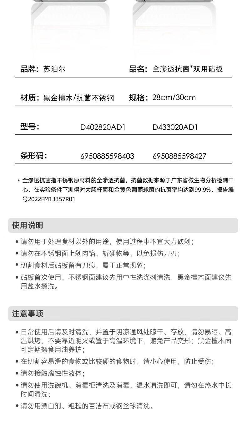 商品名称:苏泊尔D433020AD1全渗透抗菌双用砧板(单位:个) 银色