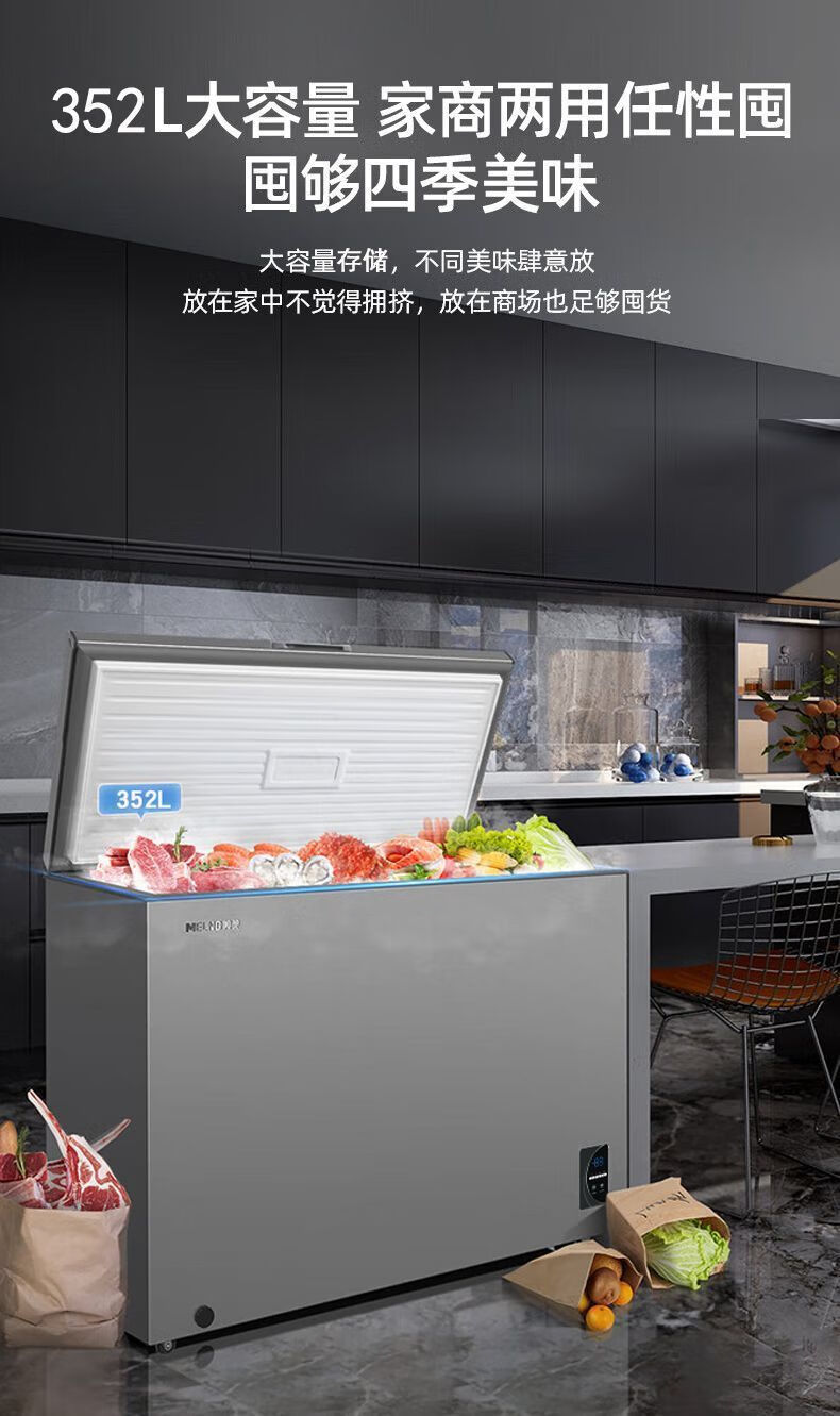 商品名称:美菱冰柜商用352升大容量 冷藏冷冻转换零下35度超低温卧式冷柜BC/BD-352DTE/台 灰色
