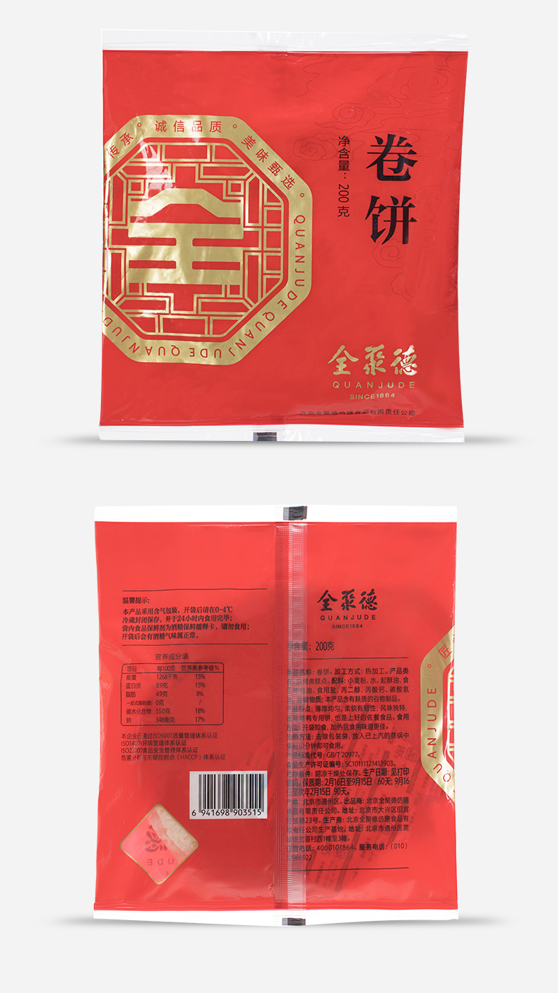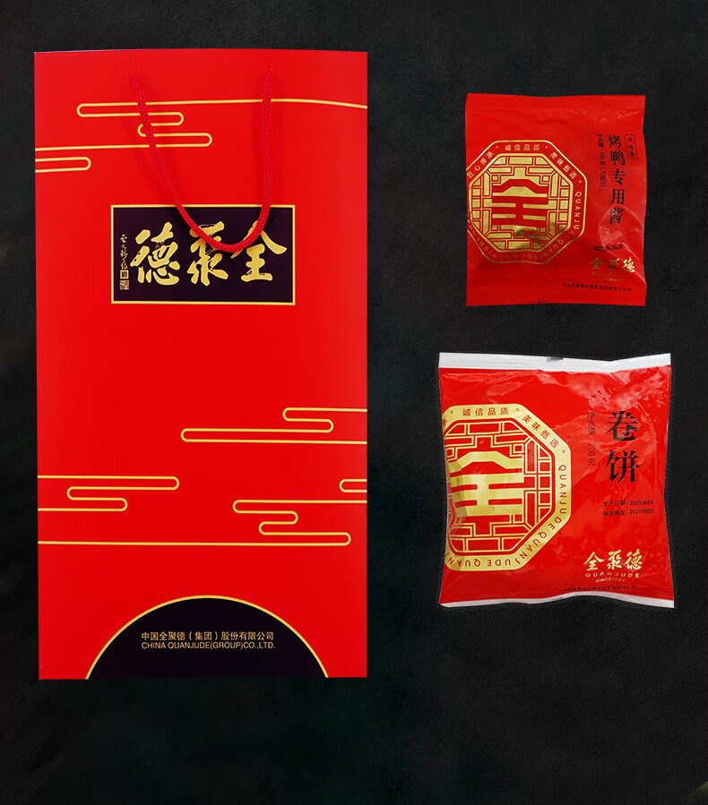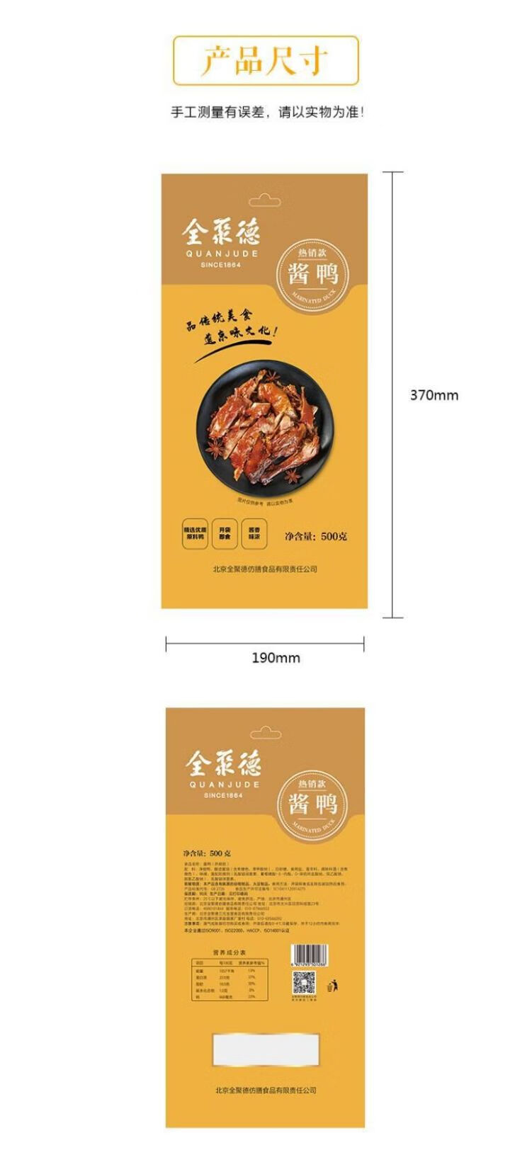 商品名称:全聚德特产北京特产 酱鸭500g+酱+饼+手提袋套 香槟黄
