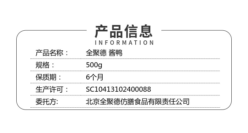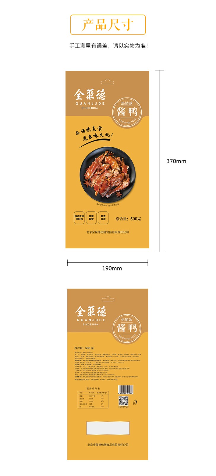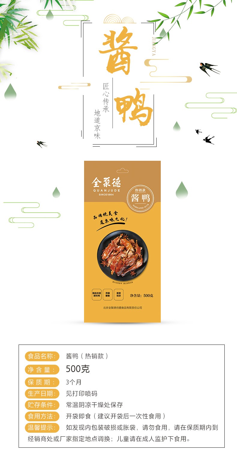 商品名称:全聚德北京特产真空半只鸭肉熟食酱鸭500g+手提袋套 酱鸭500g(热销款)+手提袋