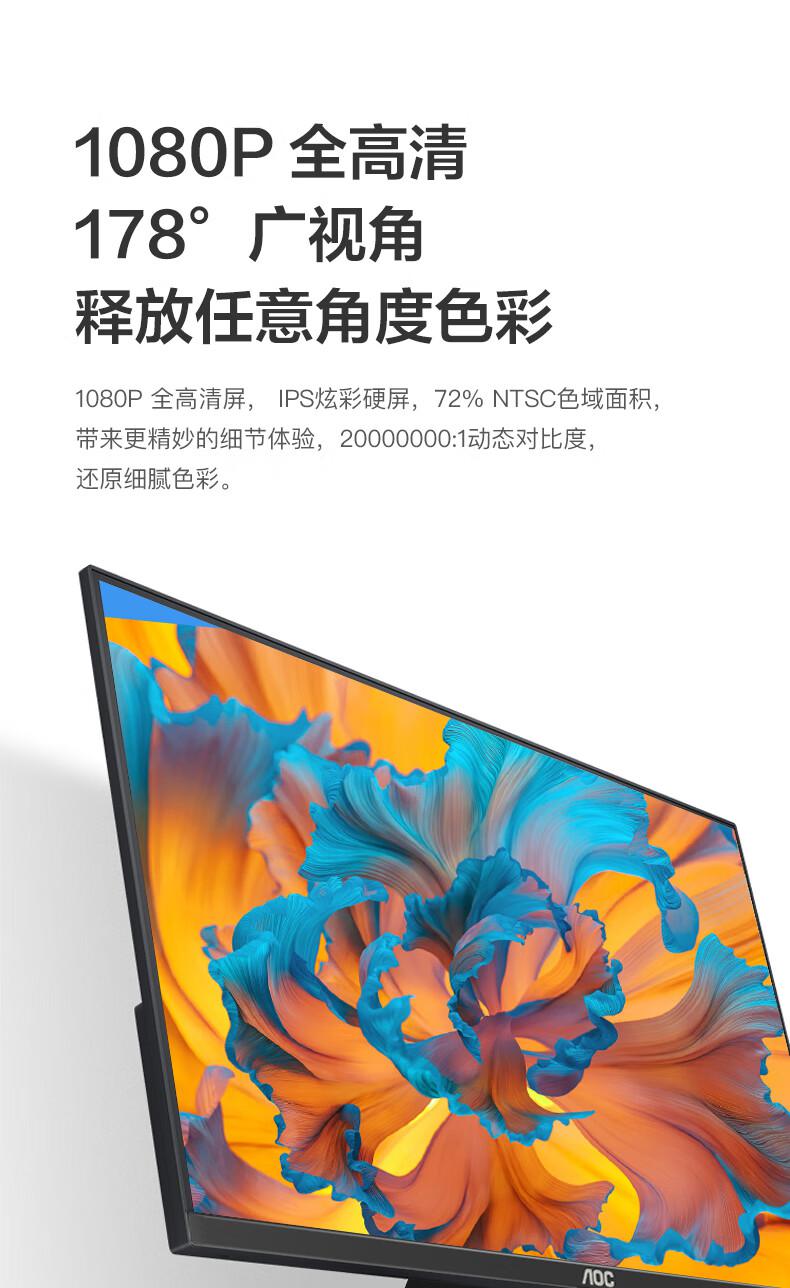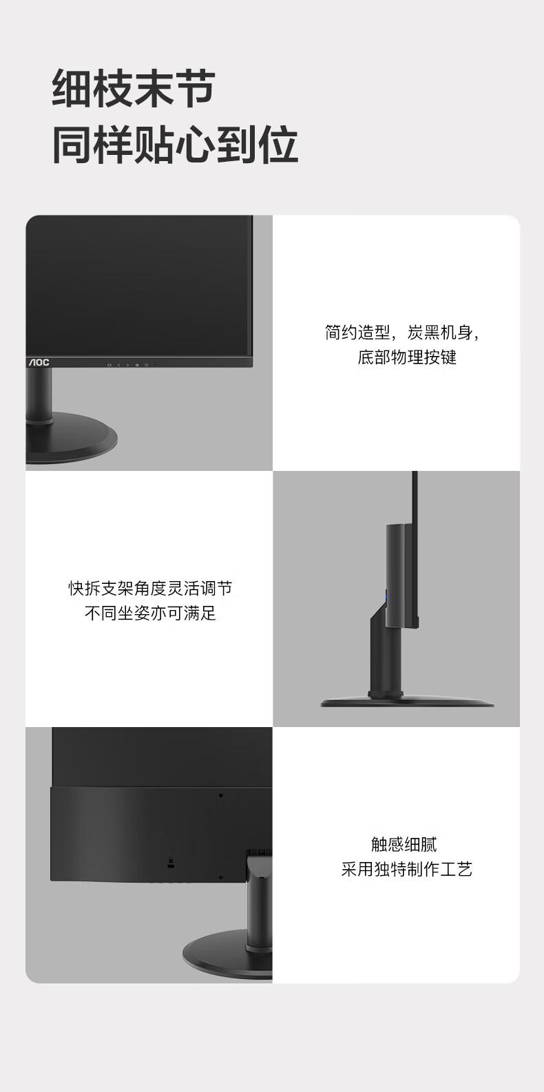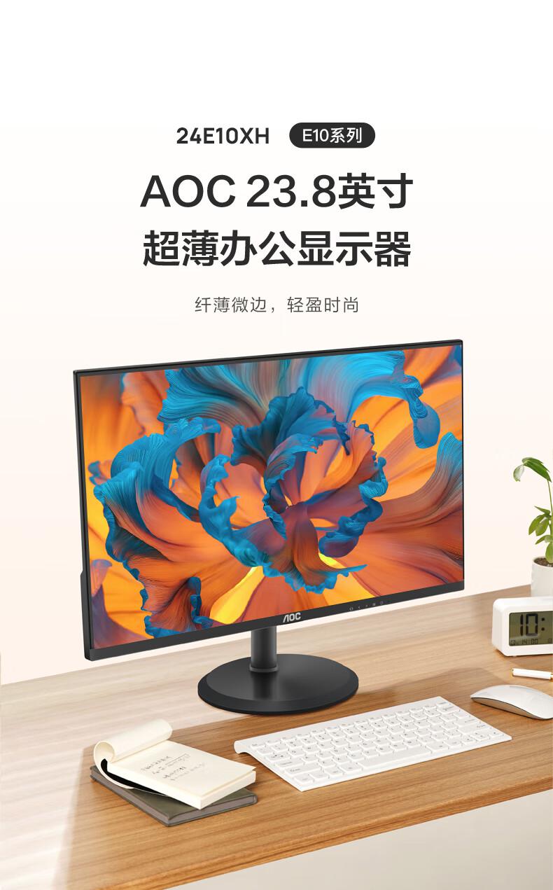 商品名称:AOC电脑显示器24E10XH 23.8英寸全高清 IPS硬屏 快拆支架可壁挂 低蓝光不闪显示屏/台 黑色