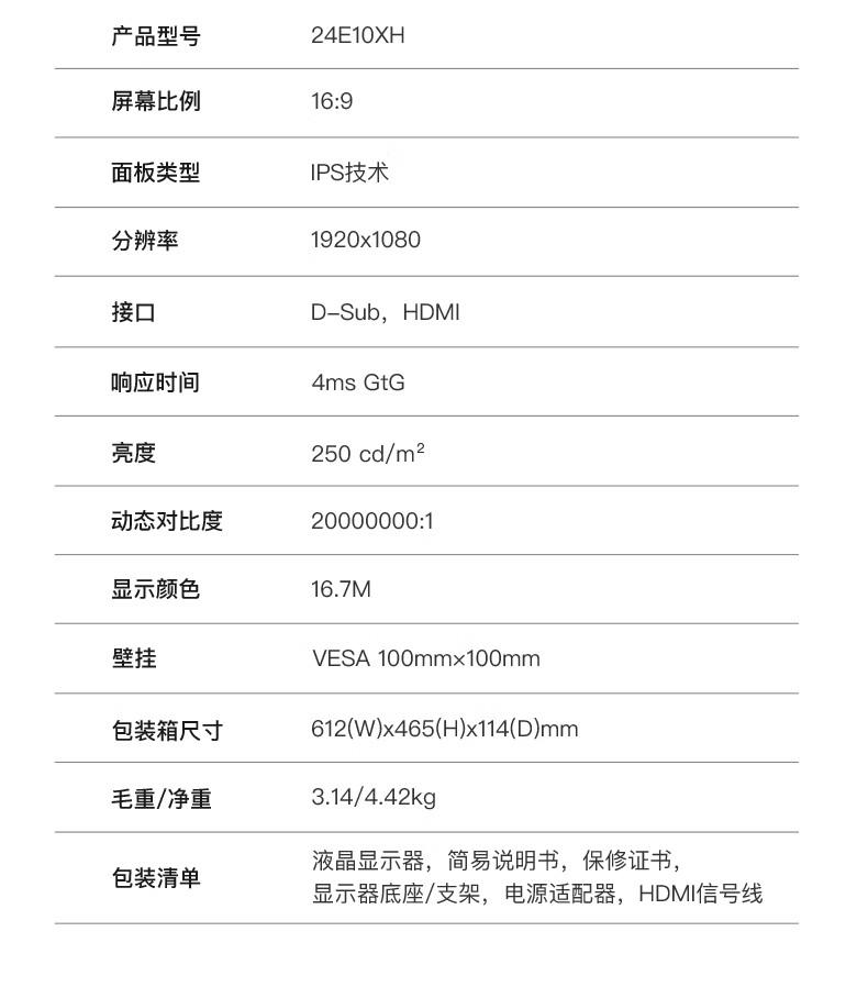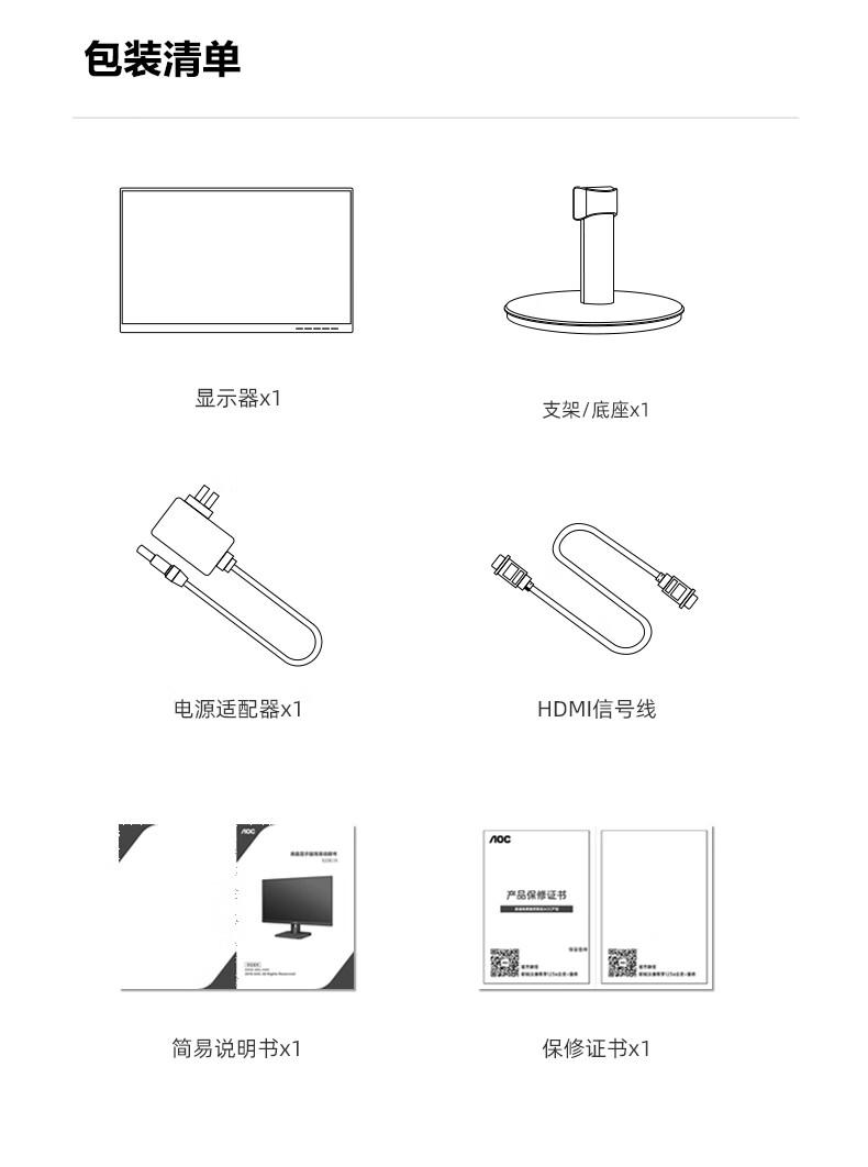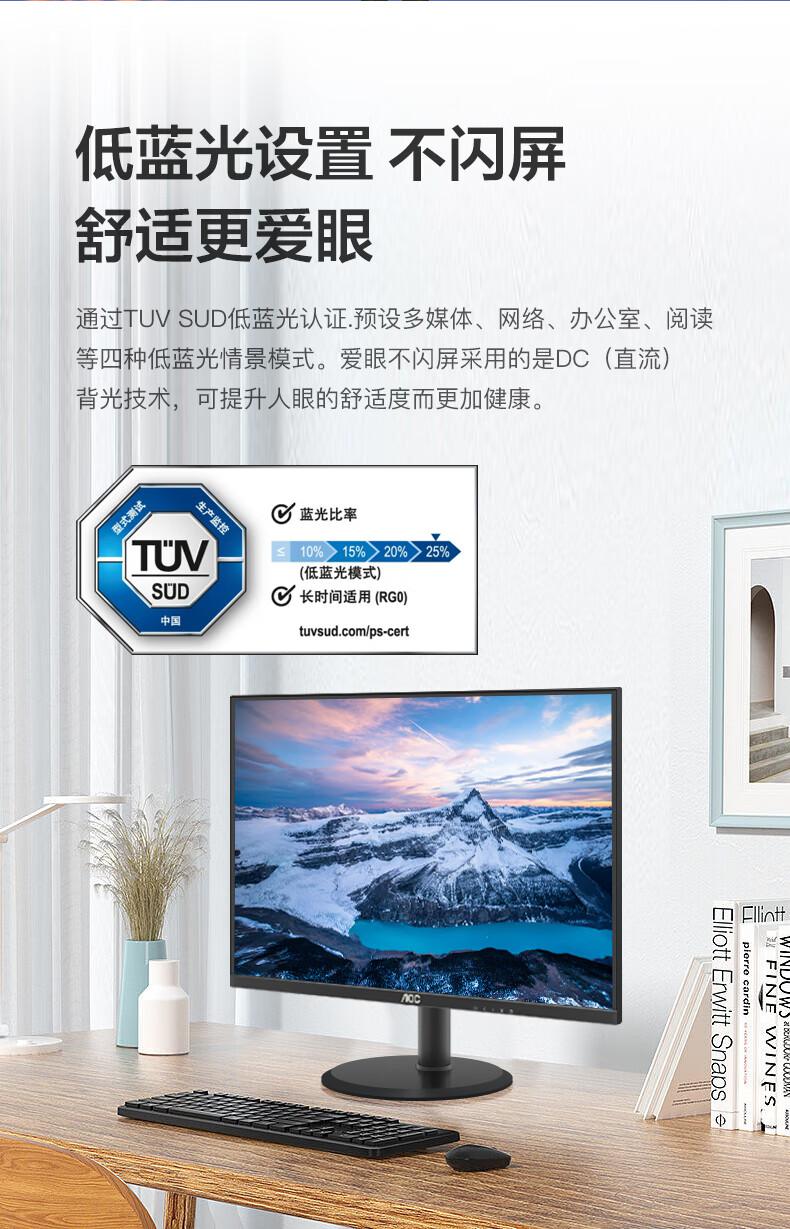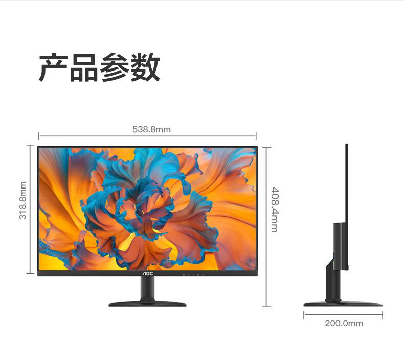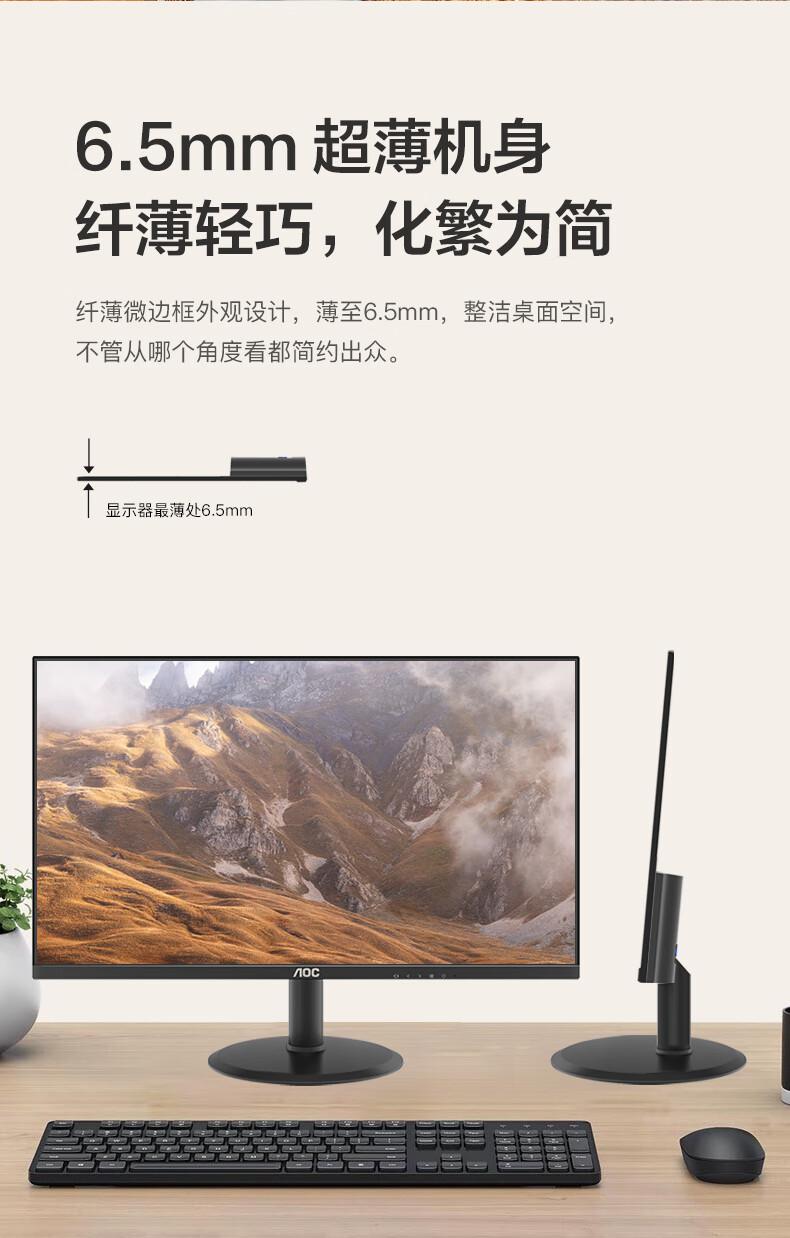 商品名称:AOC电脑显示器24E10XH 23.8英寸全高清 IPS硬屏 快拆支架可壁挂 低蓝光不闪显示屏/台 黑色
