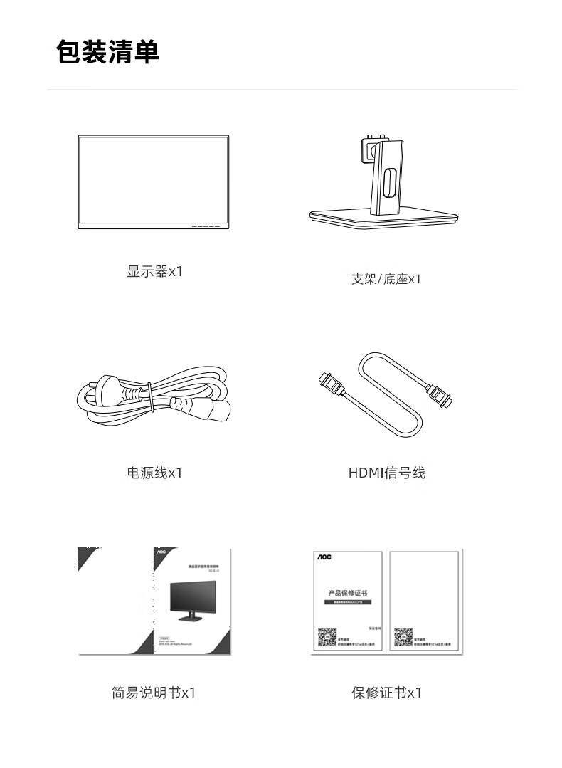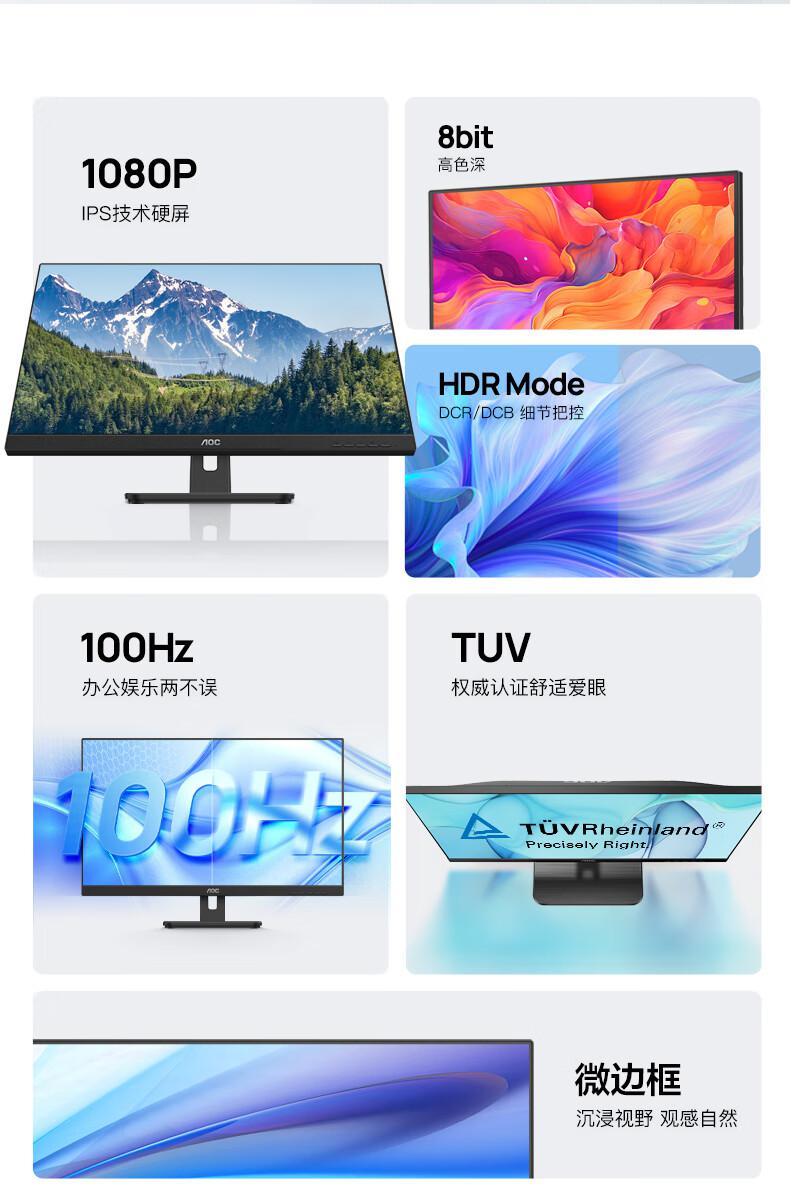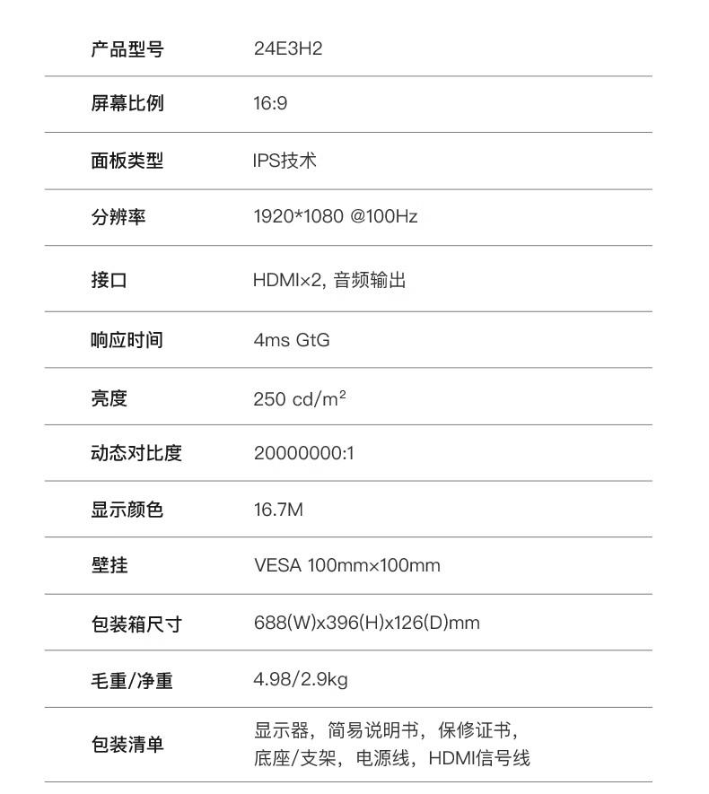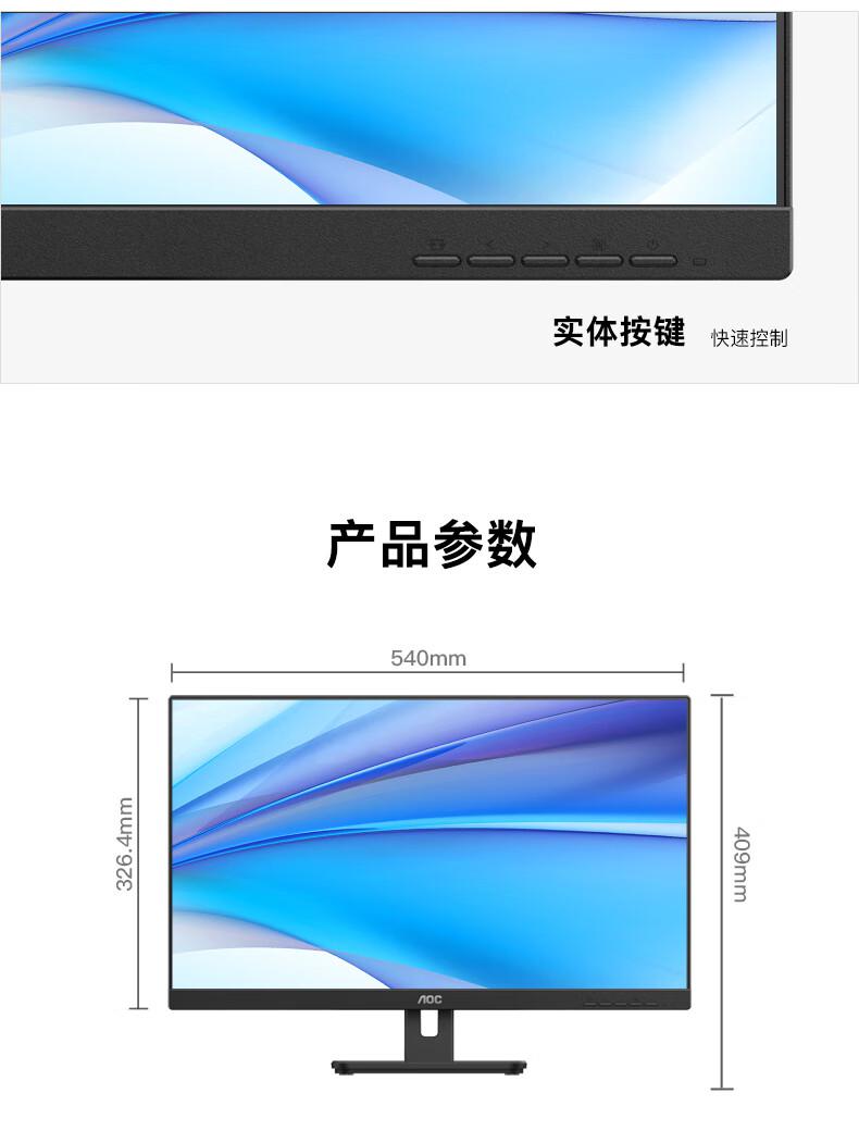 商品名称:AOC电脑显示器24E3H2 23.8英寸 IPS技术 100hz 全高清窄边框办公显示屏/台 黑色