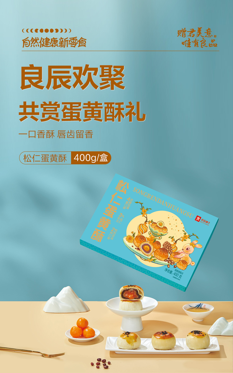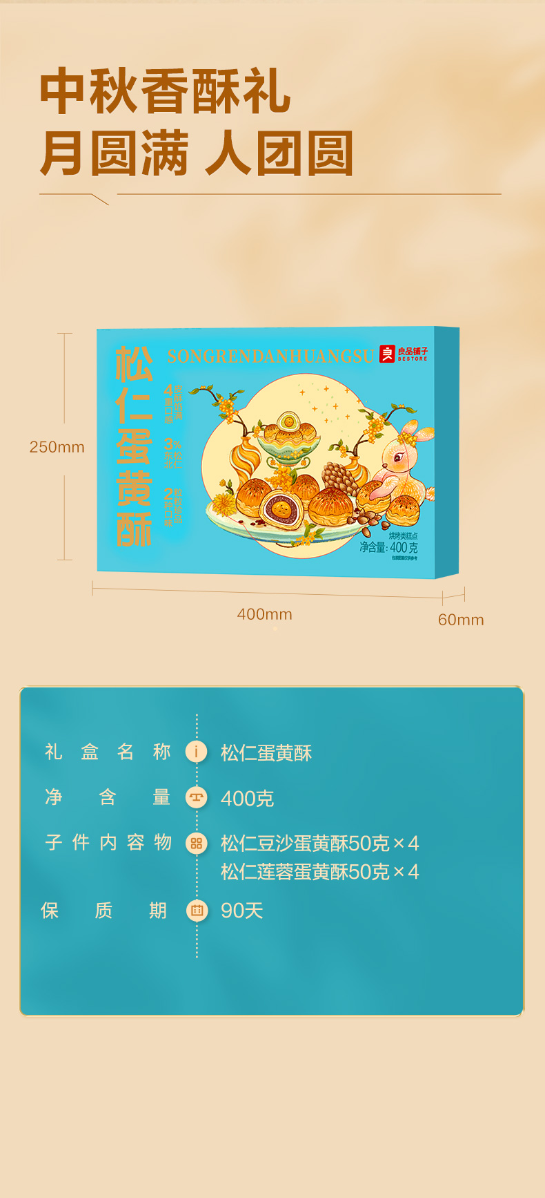 商品名称:良品铺子 松仁蛋黄酥 400g 单位:盒 蓝色