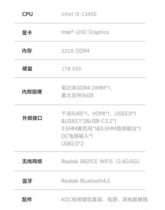 商品名称:AOC大师E66 23.8英寸一体机电脑(Intel i5-13400/32GB/1TB固)(台) 白色