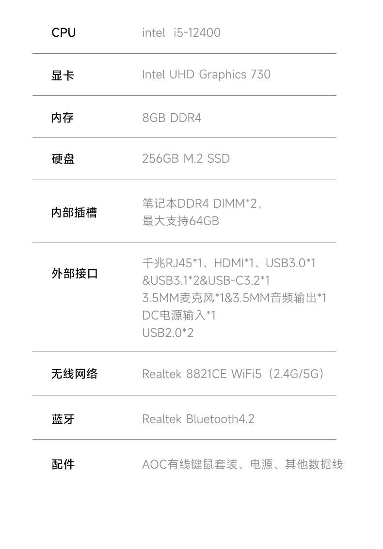 商品名称:AOC大师E99 23.8英寸一体机电脑(Intel i5-12400/8G/256G固态)(台) 银色