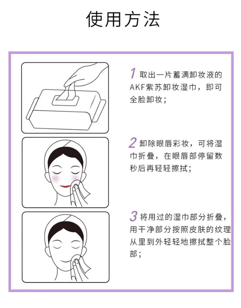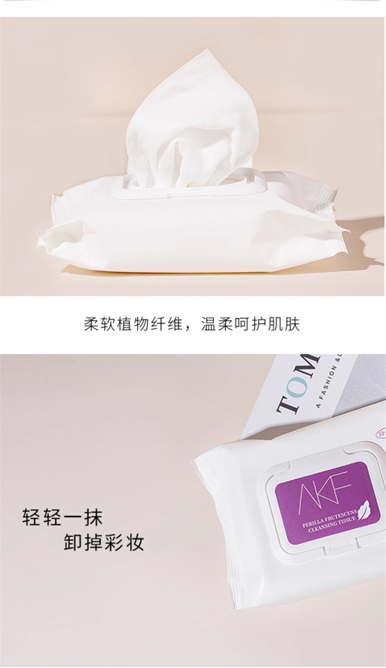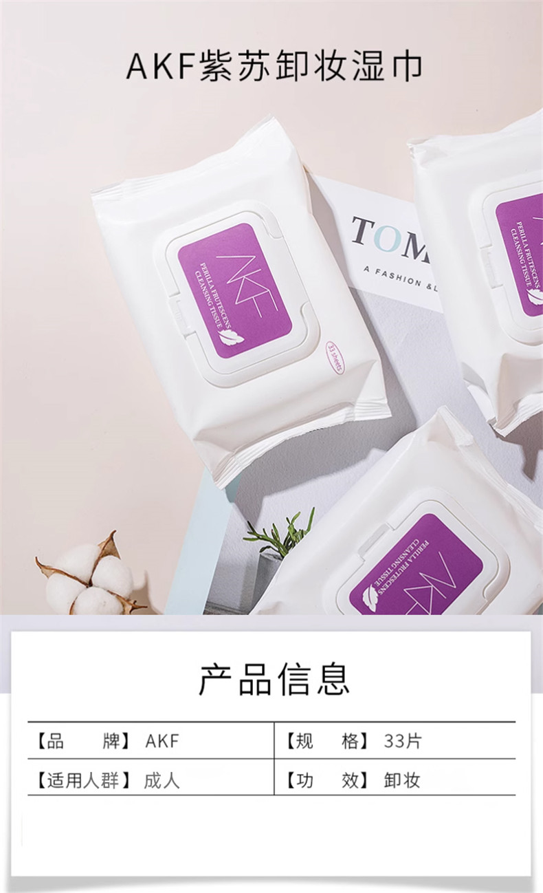 商品名称:AKF紫苏清洁卸妆湿纸巾33片*2包 33片*2包